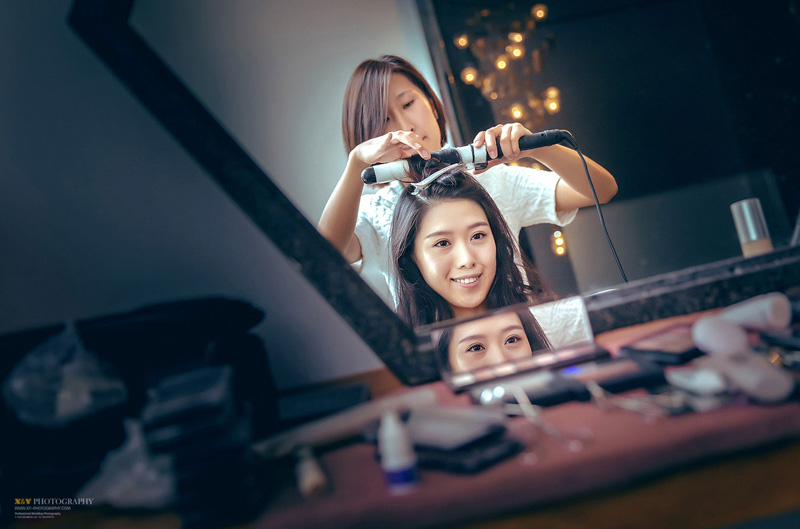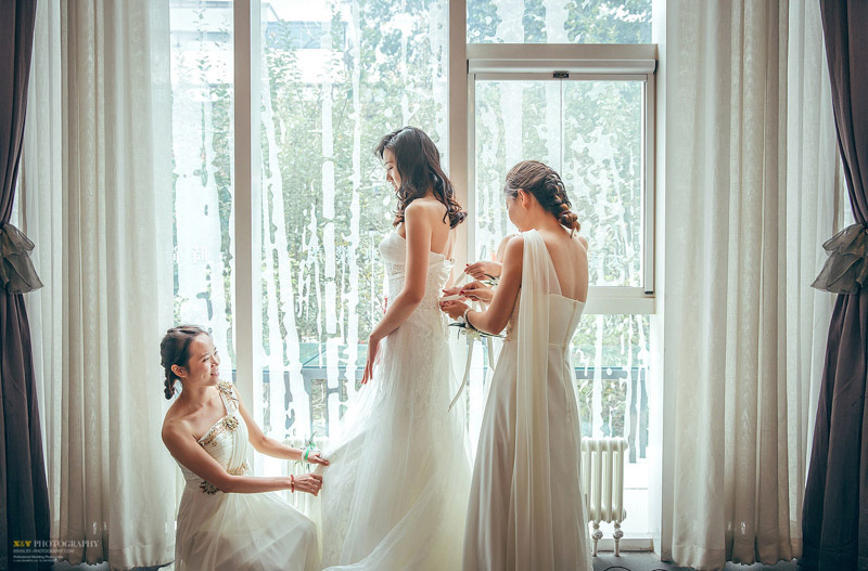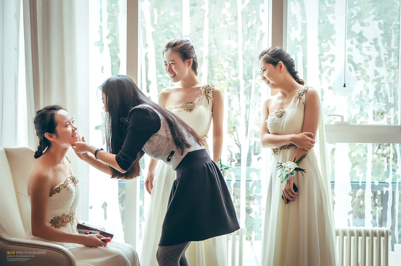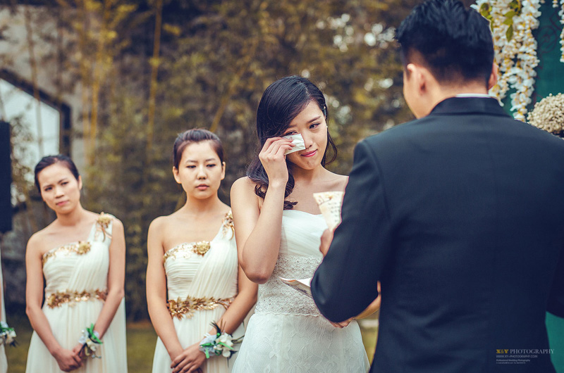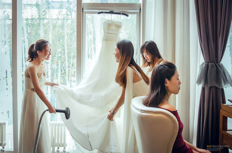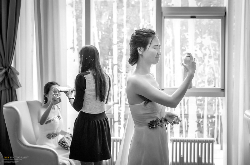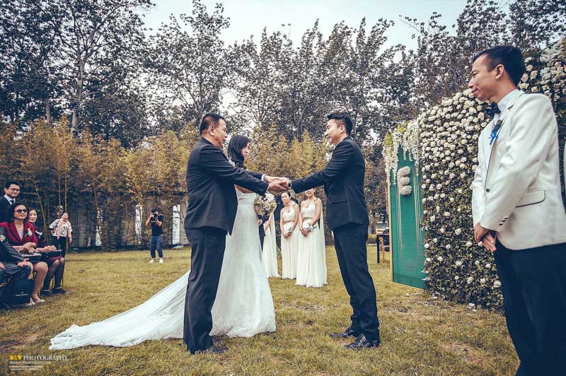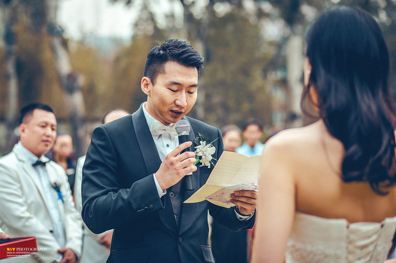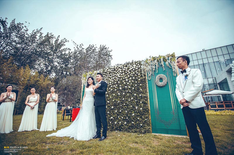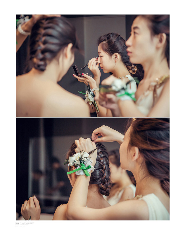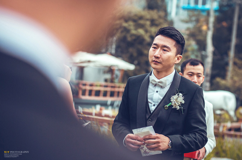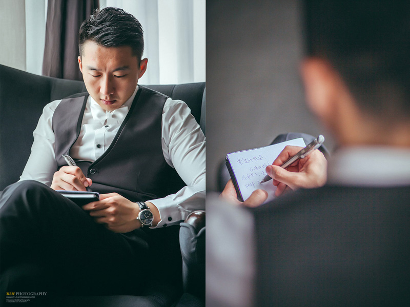 这场婚礼算是新娘在北京亲友的答谢宴,简单、幸福、感动来形容这场婚礼再不为过,所以新人在酒店化完妆就有了很多时间进行摆拍,省去了接亲、堵门游戏这样的环节,新人在仪式过程中的誓词更是感动全场……