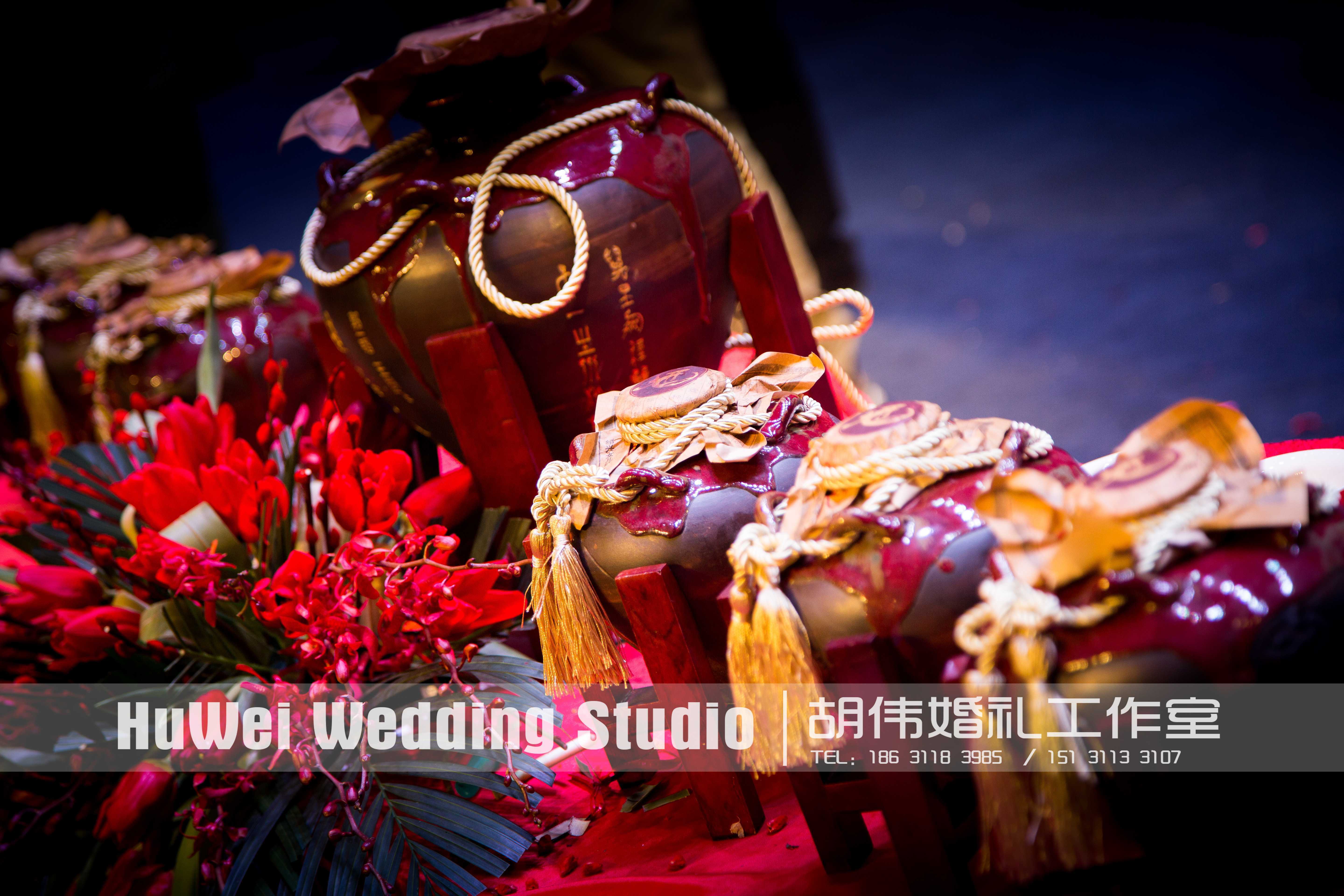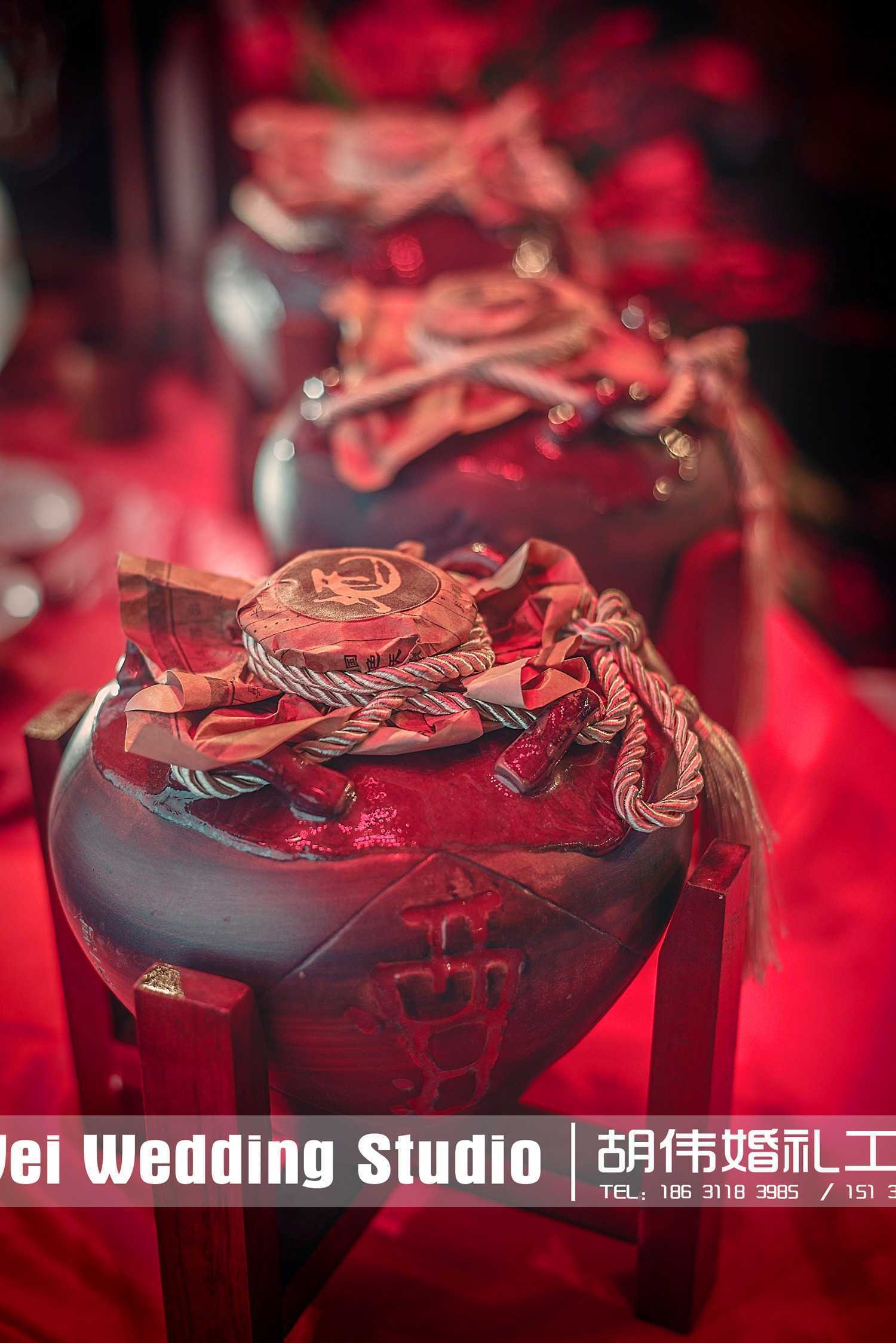 女儿红,既比喻“女儿”之美,又点黄酒之色;既添觥筹之趣,更寓事业之红红火火,在婚礼上诠释更符“中国人”婚礼精髓!“女儿红”,很是动听的名字。光是轻轻念着,就有万般柔情在舌尖缠绕。但那是酒呢。任再柔的东西,绕进酒里,都会变成浓而烈的豪情吧。“姑娘长大了,屋后的老酒变成了心事,来来回回伤着寂寞的春。姑娘许了人家,女儿红变成喜悦的希翼,怕等不及,已隔着泥土,散发起诱人的酒香。当红红的盖头遮住羞涩,艳艳的绣裙晃动着燃烧的情,款款而行。气质若兰,倩影如荷,芬芳似桂,众生迷醉……