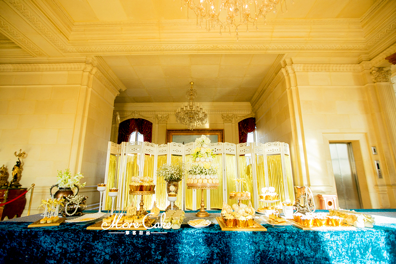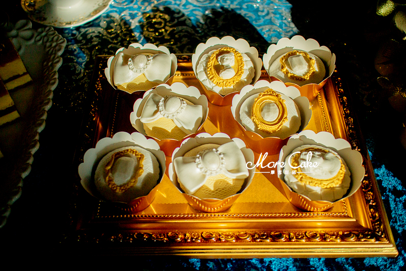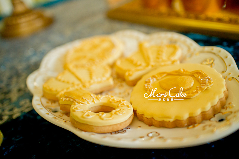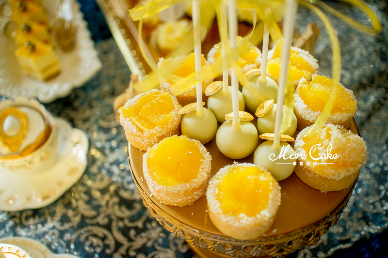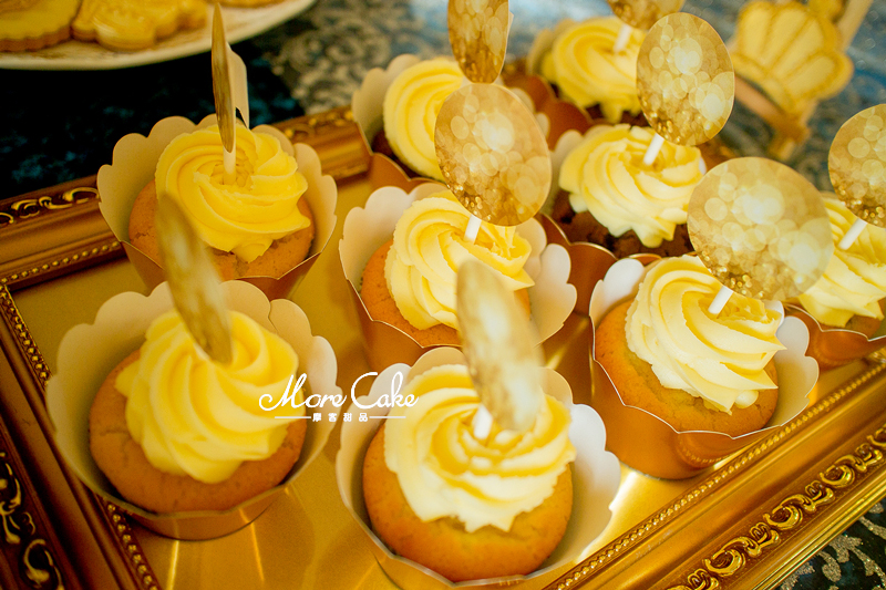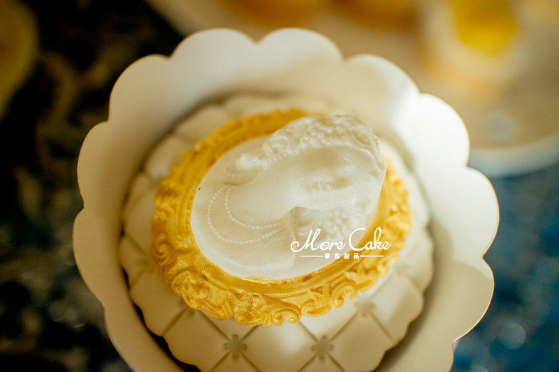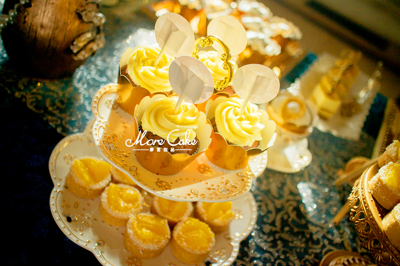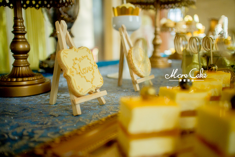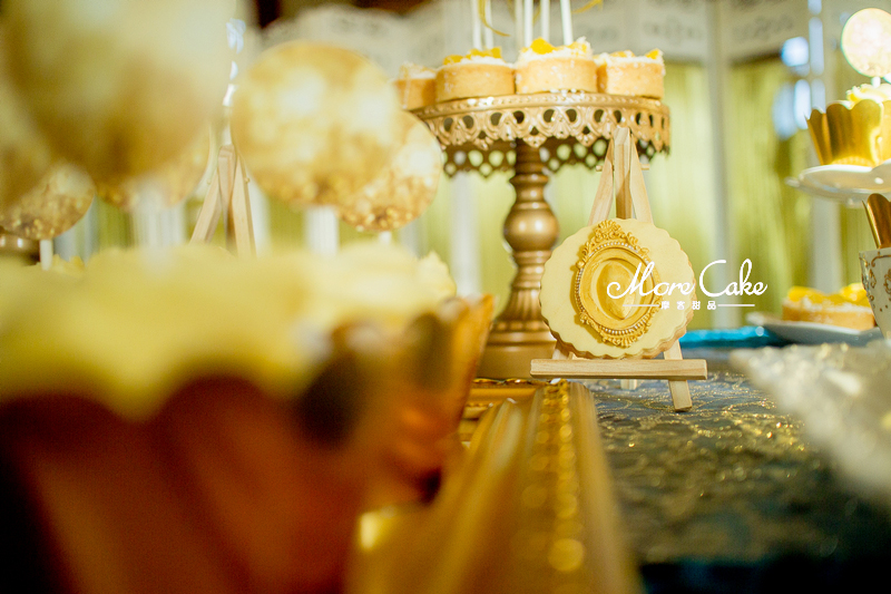 MoreCake为大家送上一场奢华皇室风格的甜品台。以黄色为主色调,让宾客在惊艳之余突出奢华的质感。搭配浮雕感的翻糖装饰,一场皇室气息扑面而来。