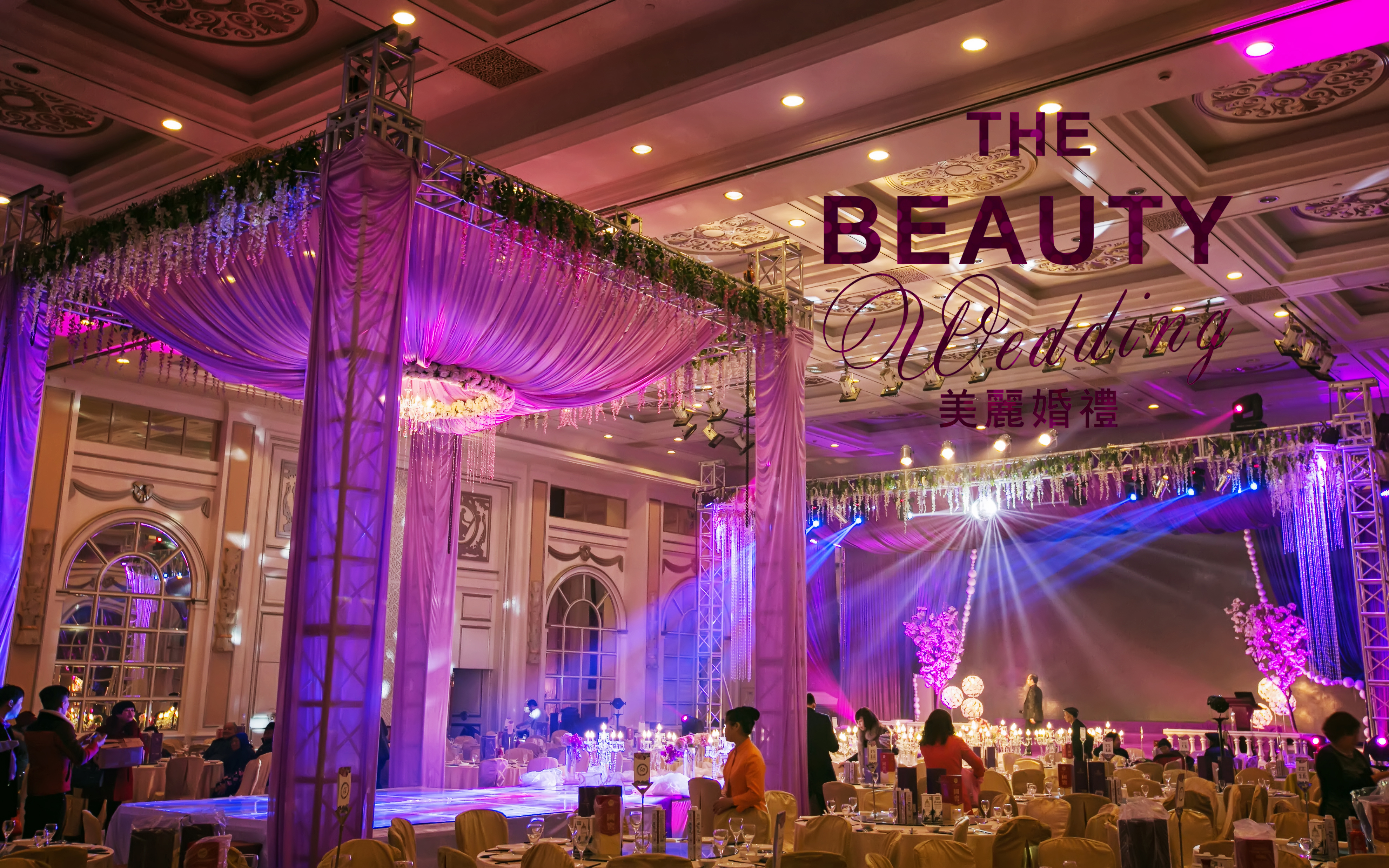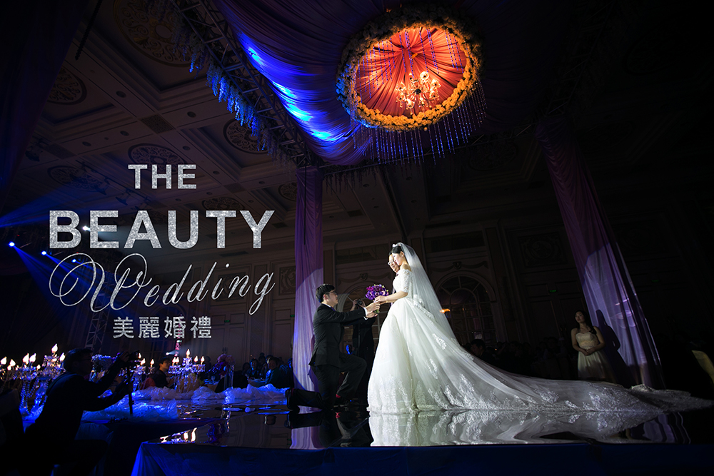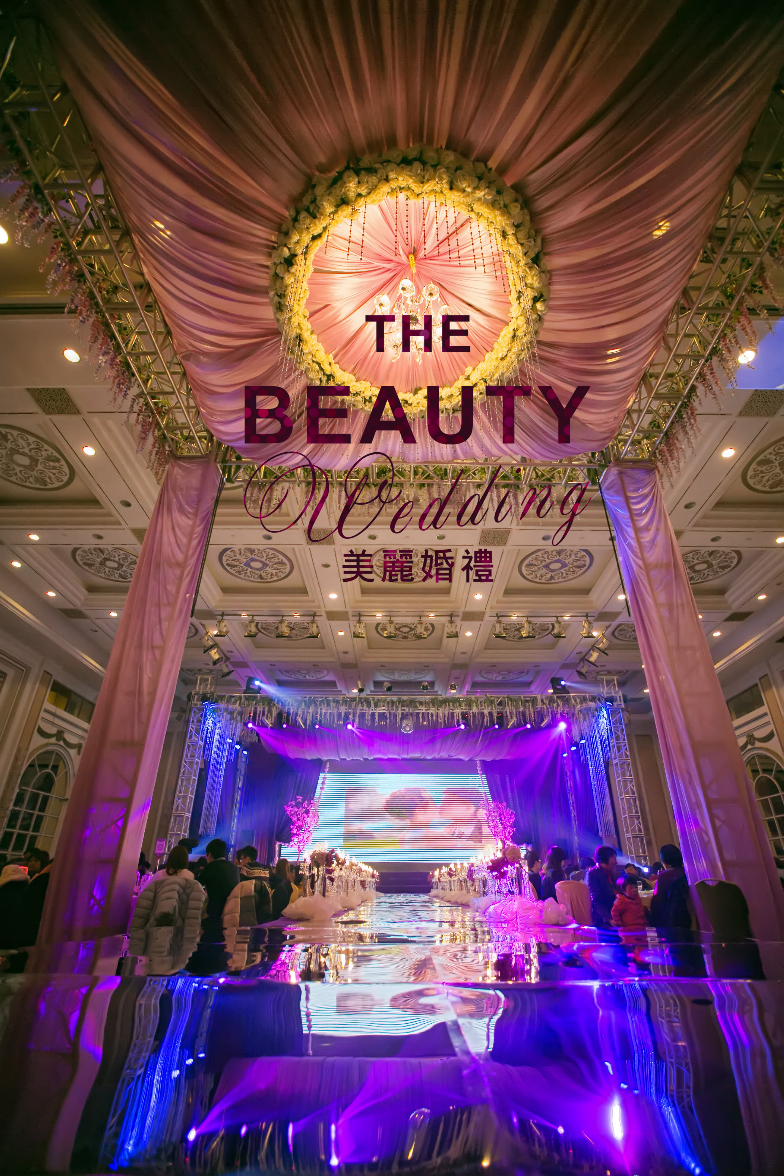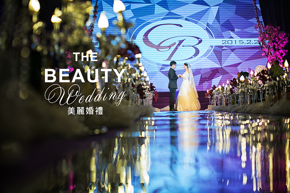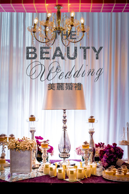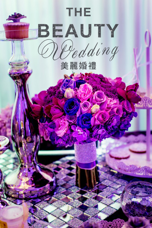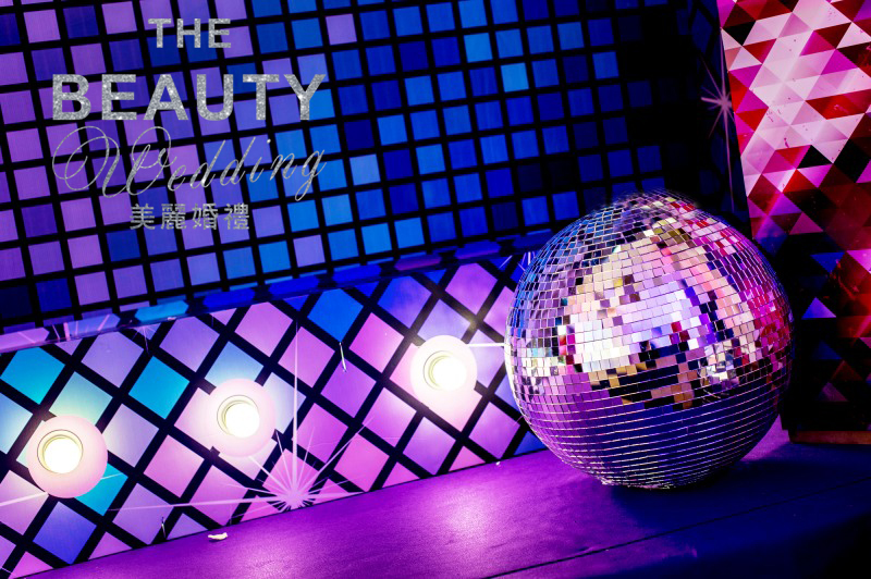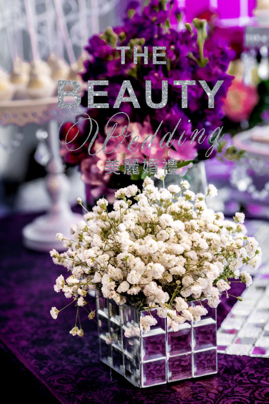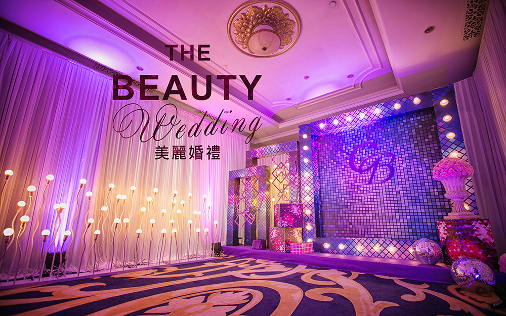 因为新人喜欢时尚感强烈些的婚礼现场,因此,我把bling bling的银色、紫色马赛克运用到了婚礼当中,时尚而又绚丽。