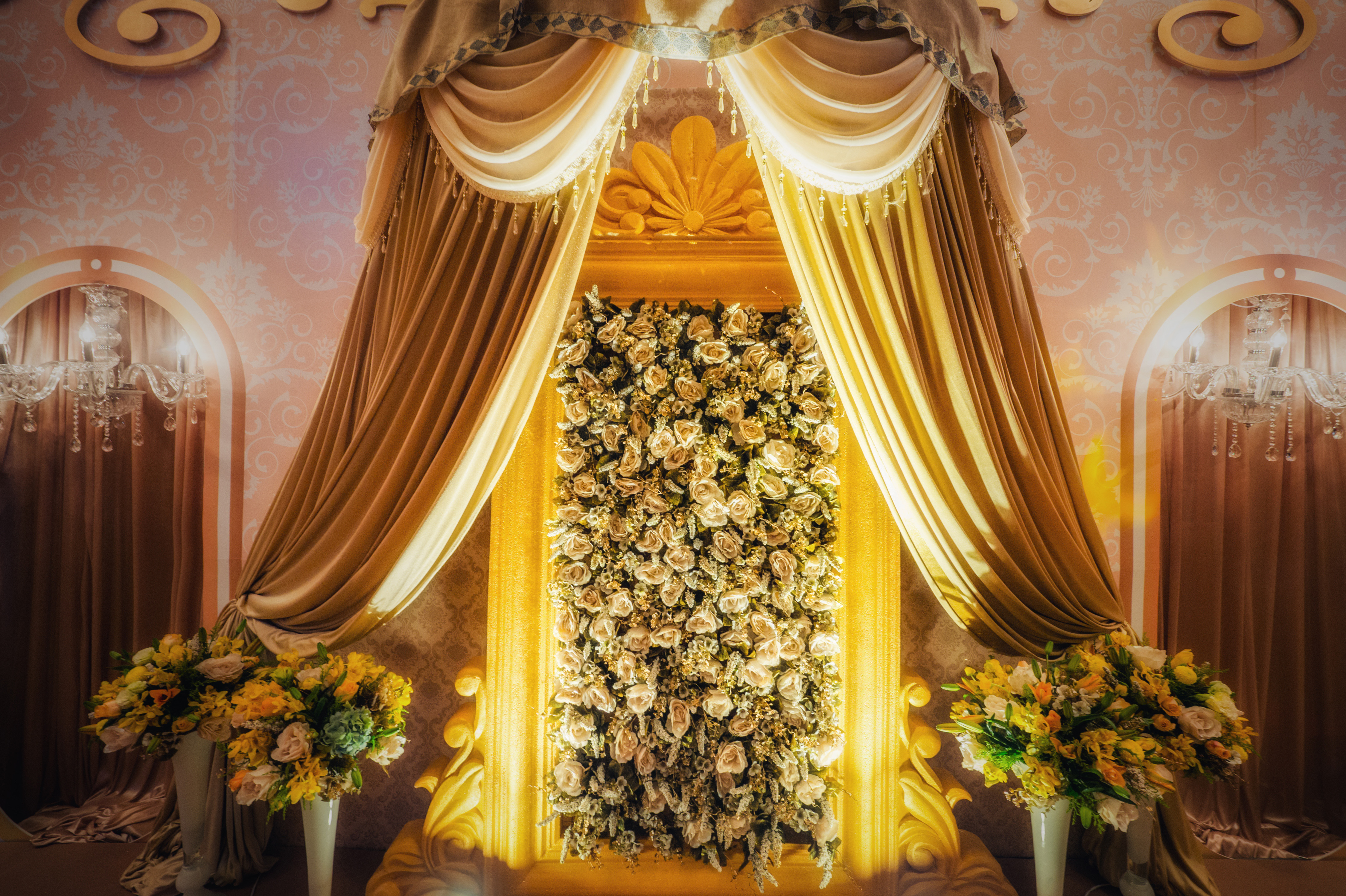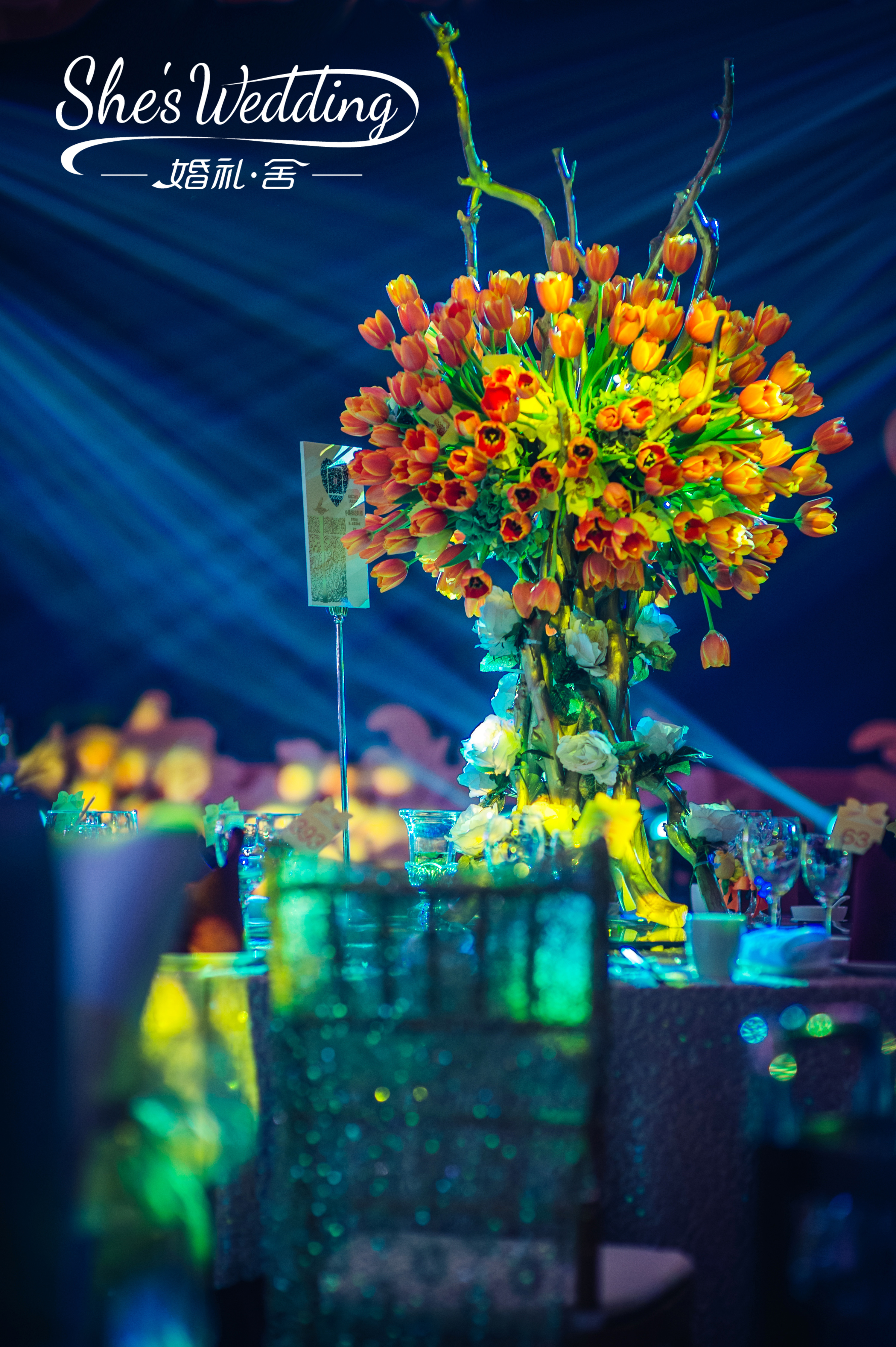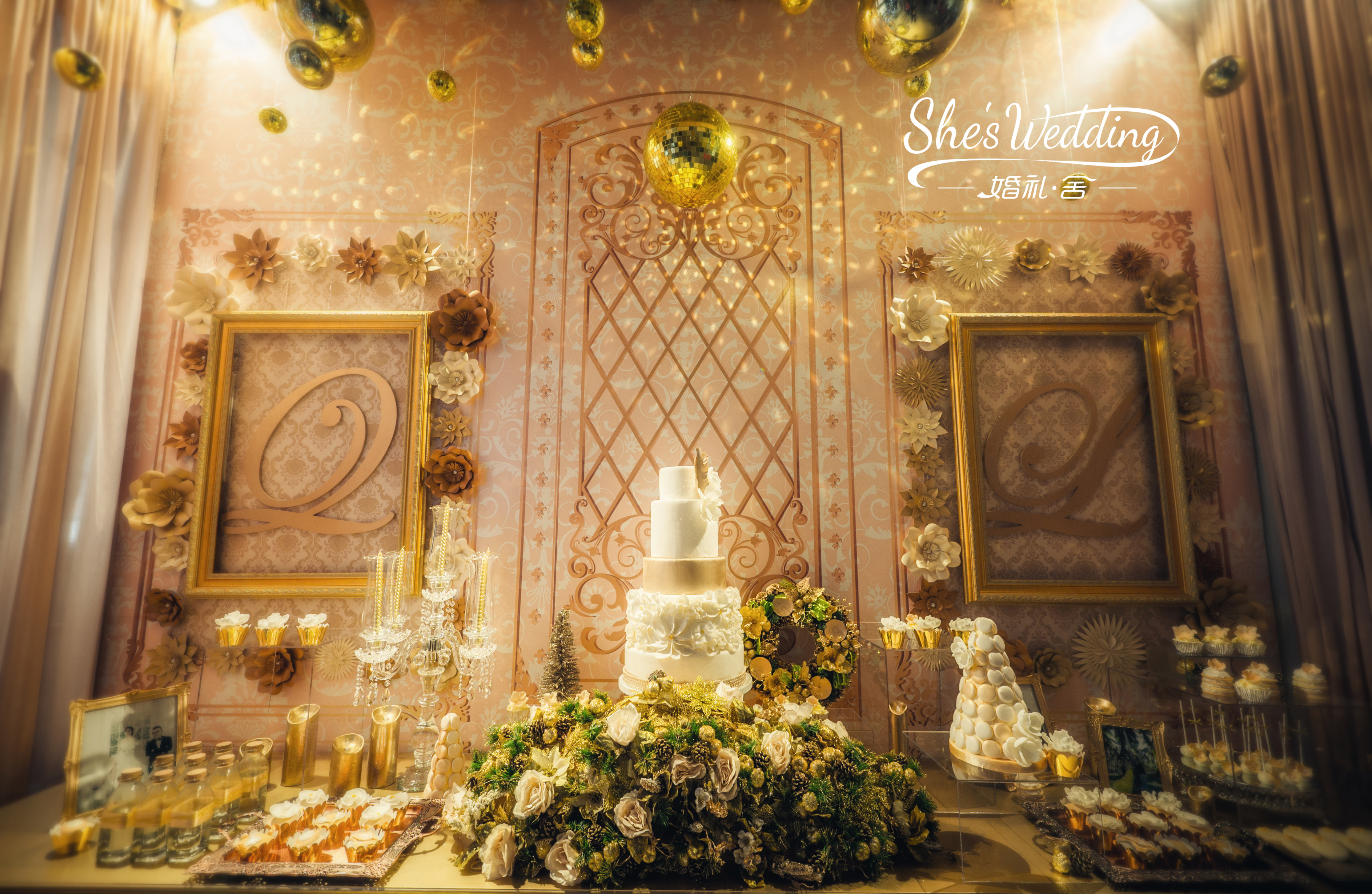 从天而降的3米圣诞树,散发出高贵的香槟金,炫目地引人梦系魂莹,晕开了记忆温度。雀跃的橙色郁金香和迷醉奢华的金色雕花,互相诉说着鲜艳的爱情,柳媚花妍羡煞旁人。娇俏的蛋糕呼吸着点点星光,匆匆一眼,往思梦畔耳边,甜蜜的绕人心头。所有的一切如待拆的礼物,渴望着惊喜的拥抱。