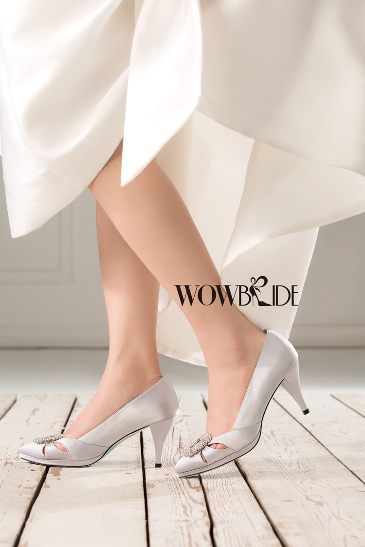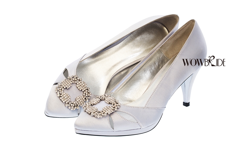 是一款闪亮,精美的婚鞋。中细高跟,脚感非常好。1厘米的防水台设计和独特的鞋跟,都增添了这款婚鞋的精致优雅风格。闪钻饰口及鞋面镂空设计,更显新娘的品味和不凡的气质。