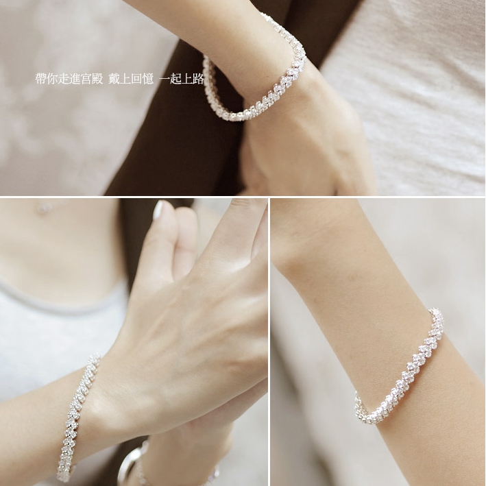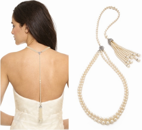 仿珍珠花朵套链、露背婚纱反带流苏项链、闪钻手链、经典耳环等经典配饰。