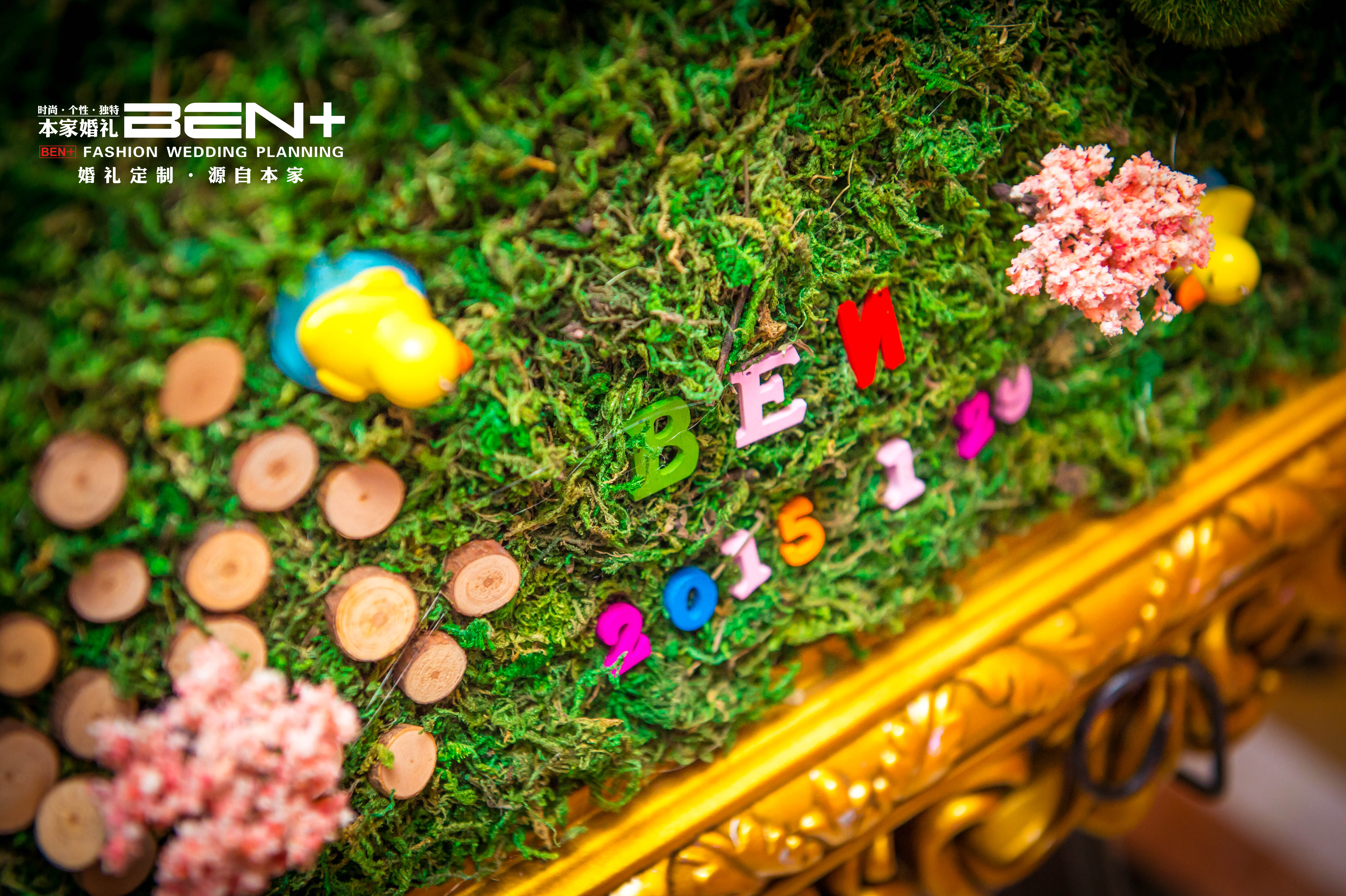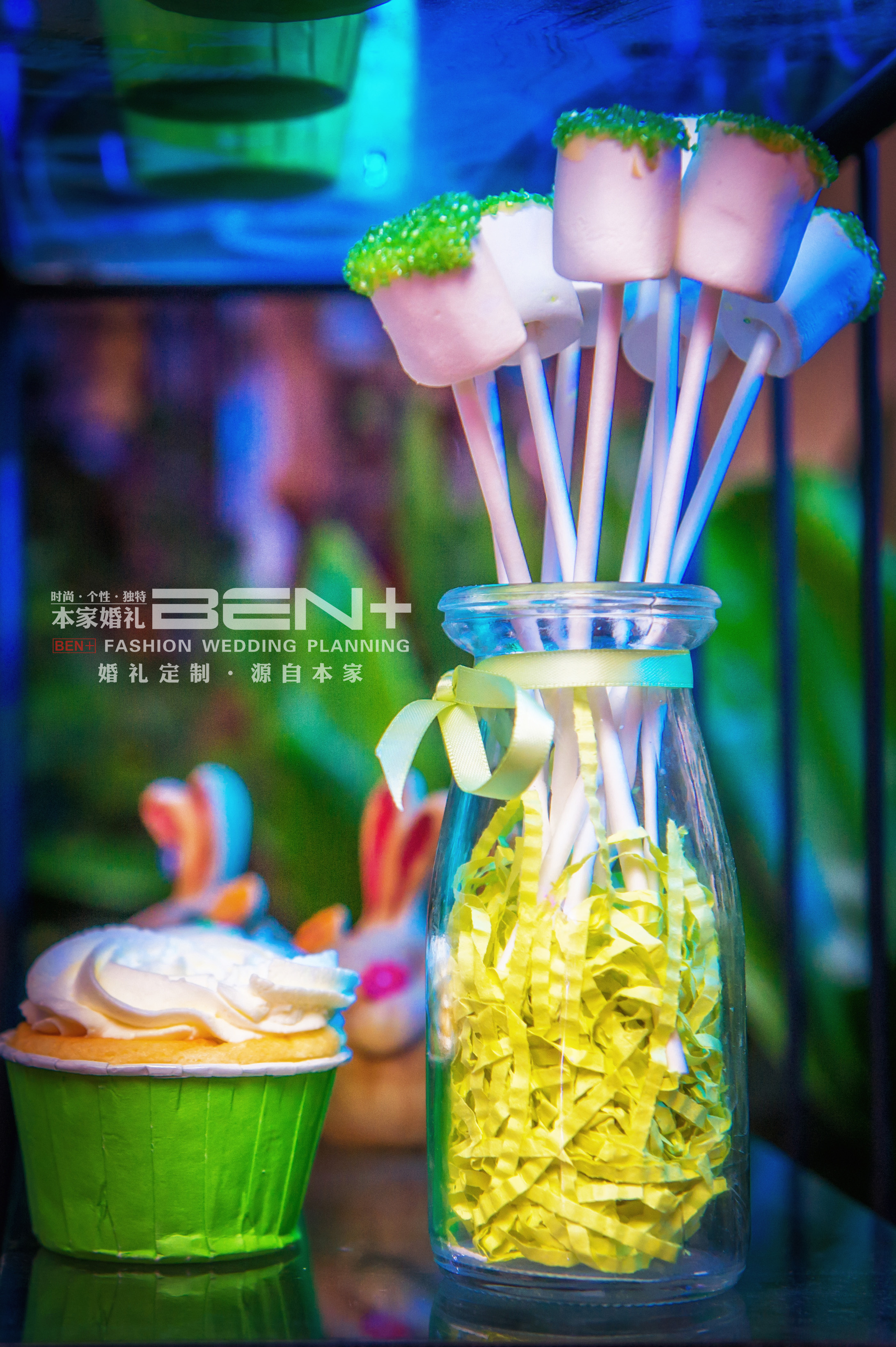 【宁海本家婚礼策划】新郎是一个爽快而有开朗的一个男人,新娘是一名活泼可爱的“白衣天使”,这场婚礼以新娘名“微·景”而命名;从主婚车到手捧花到甜品区等等都采用多肉植物和瓶中微景观元素;让一场婚礼更加年轻个性时尚化;