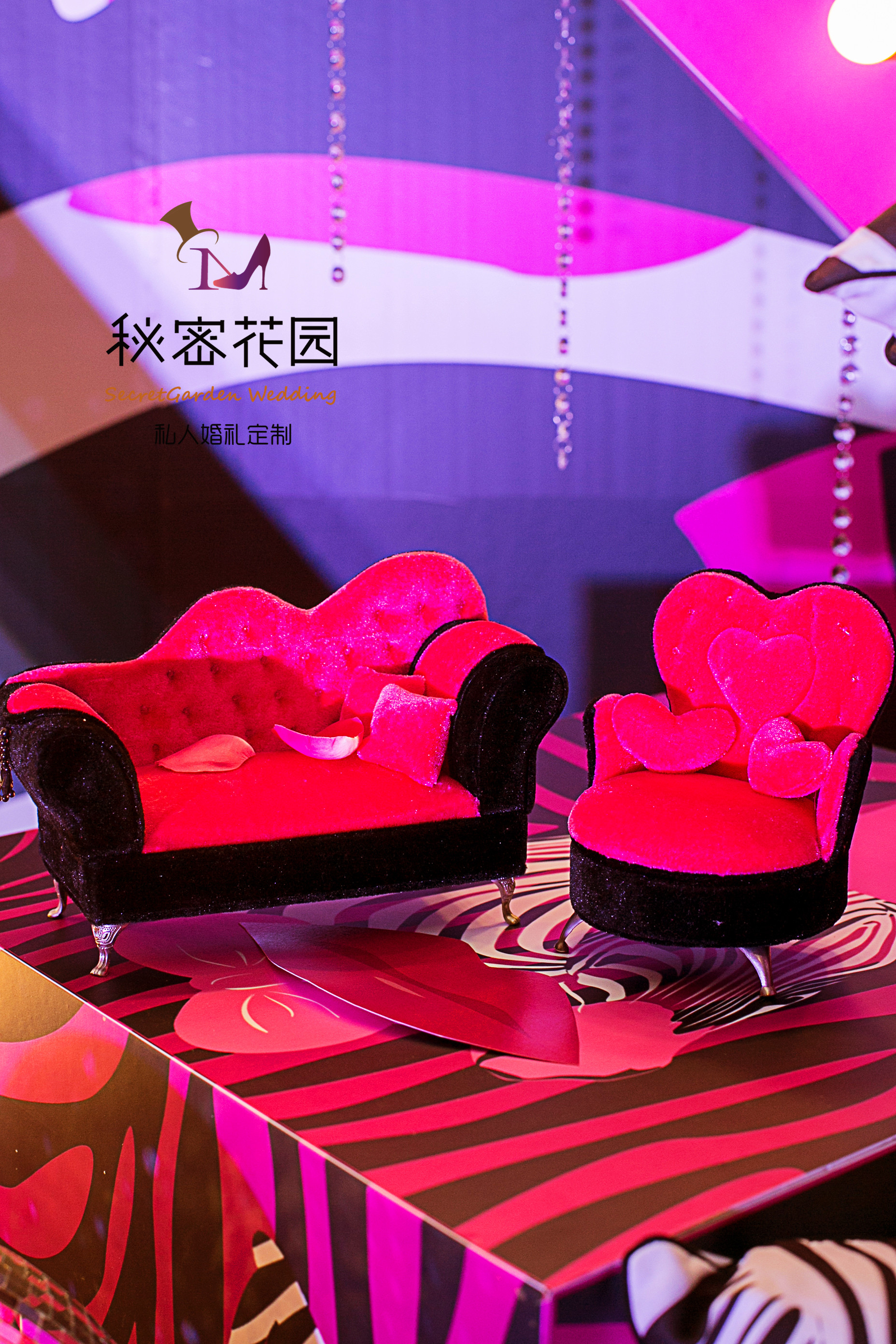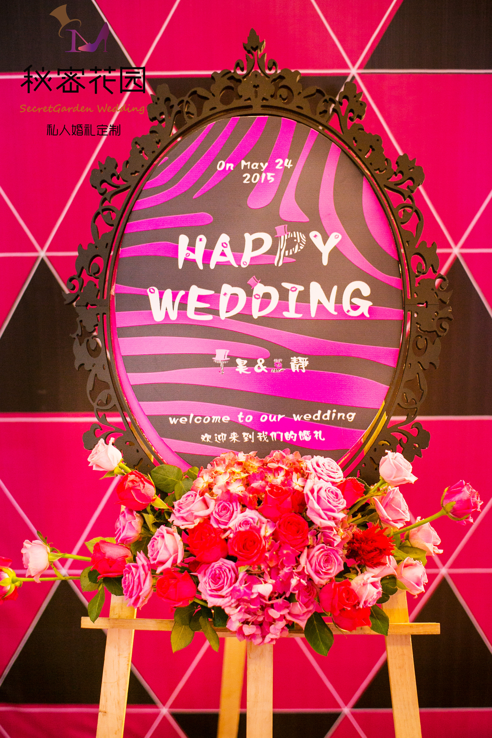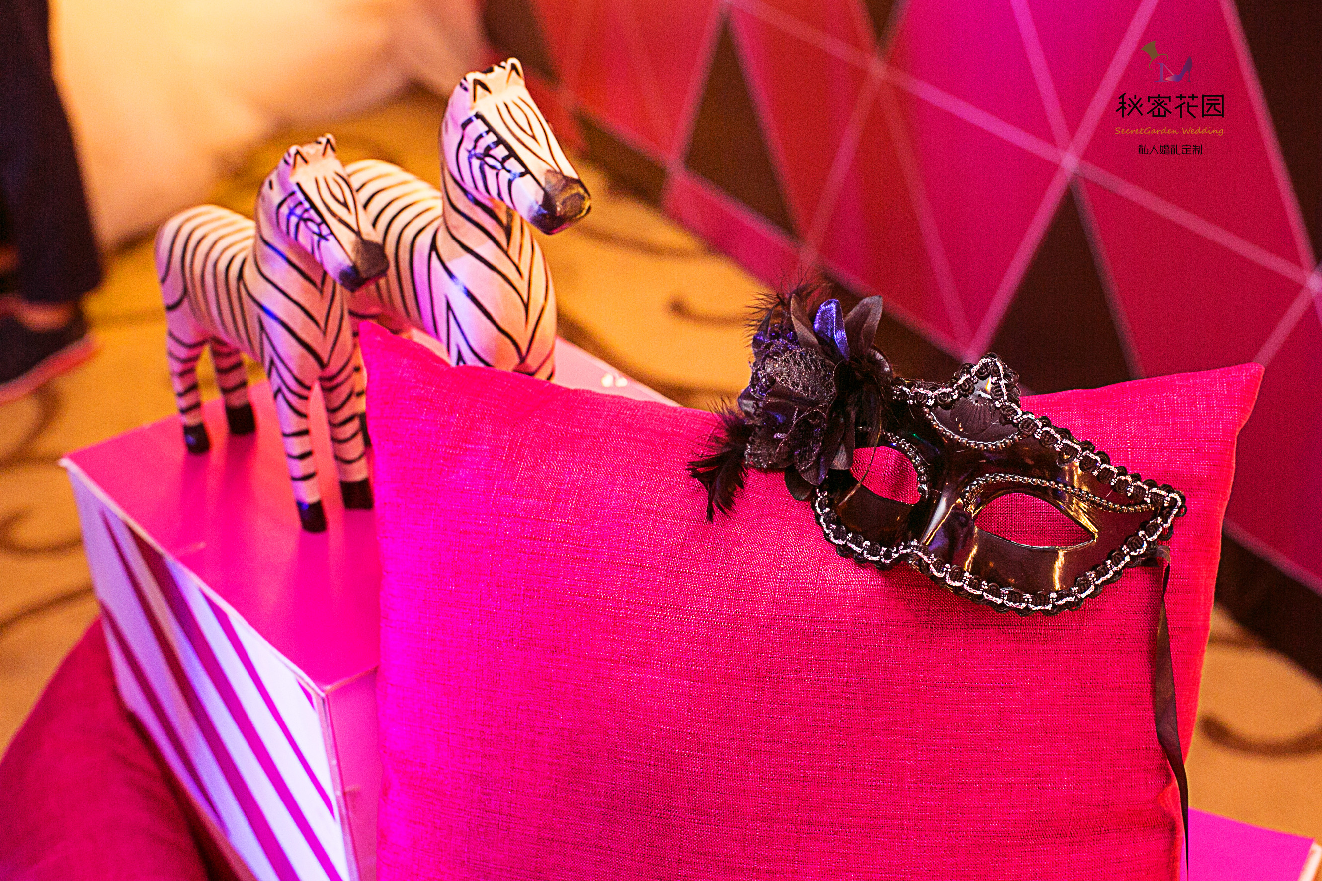 个性张扬,斑马纹,搭配枚红色。骚气的颜色,符合现在90后个性张扬,婚礼不一定需要很奢华,但我可以让宾客留下难忘的记忆。这就是我们的小个性。