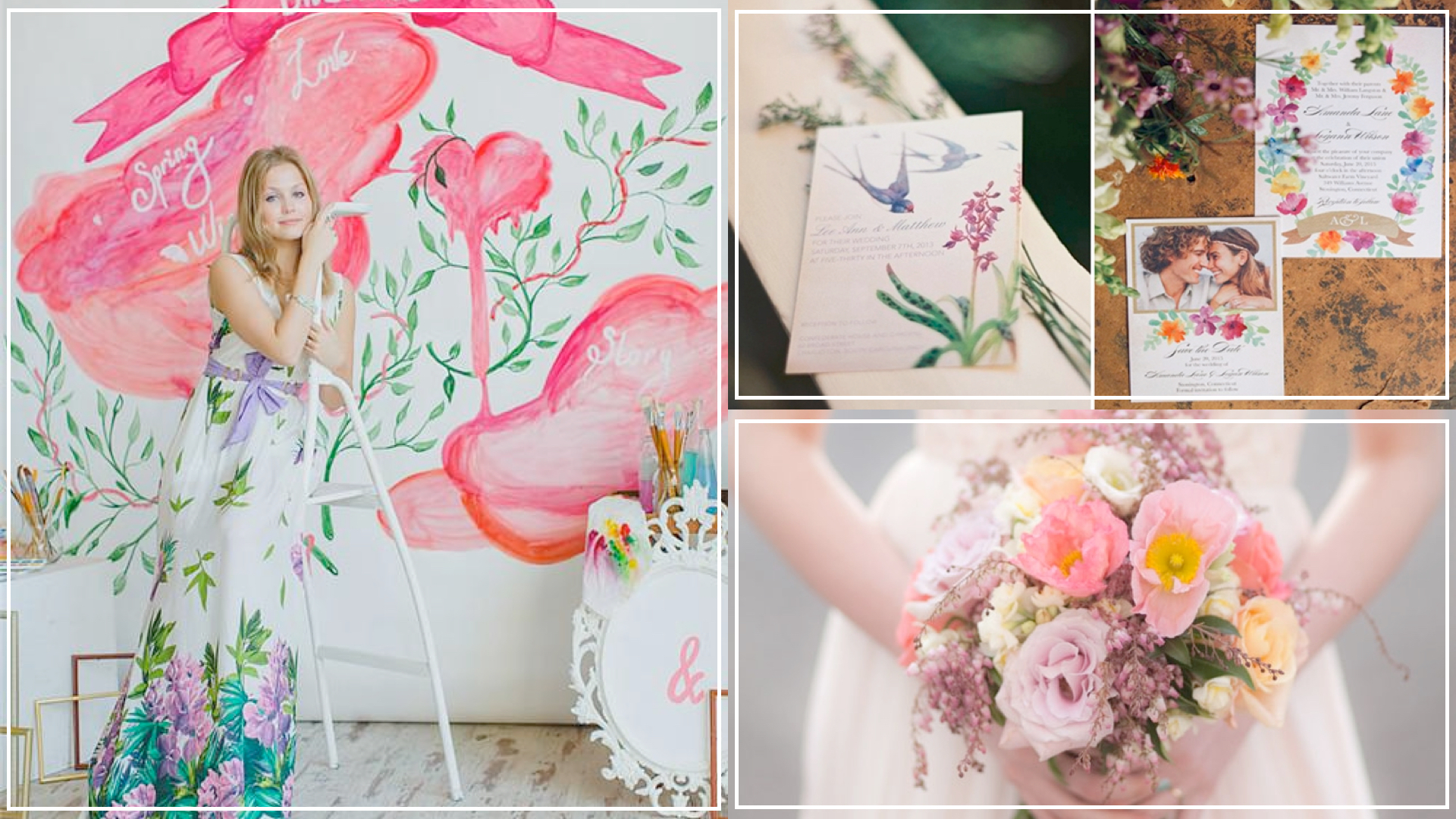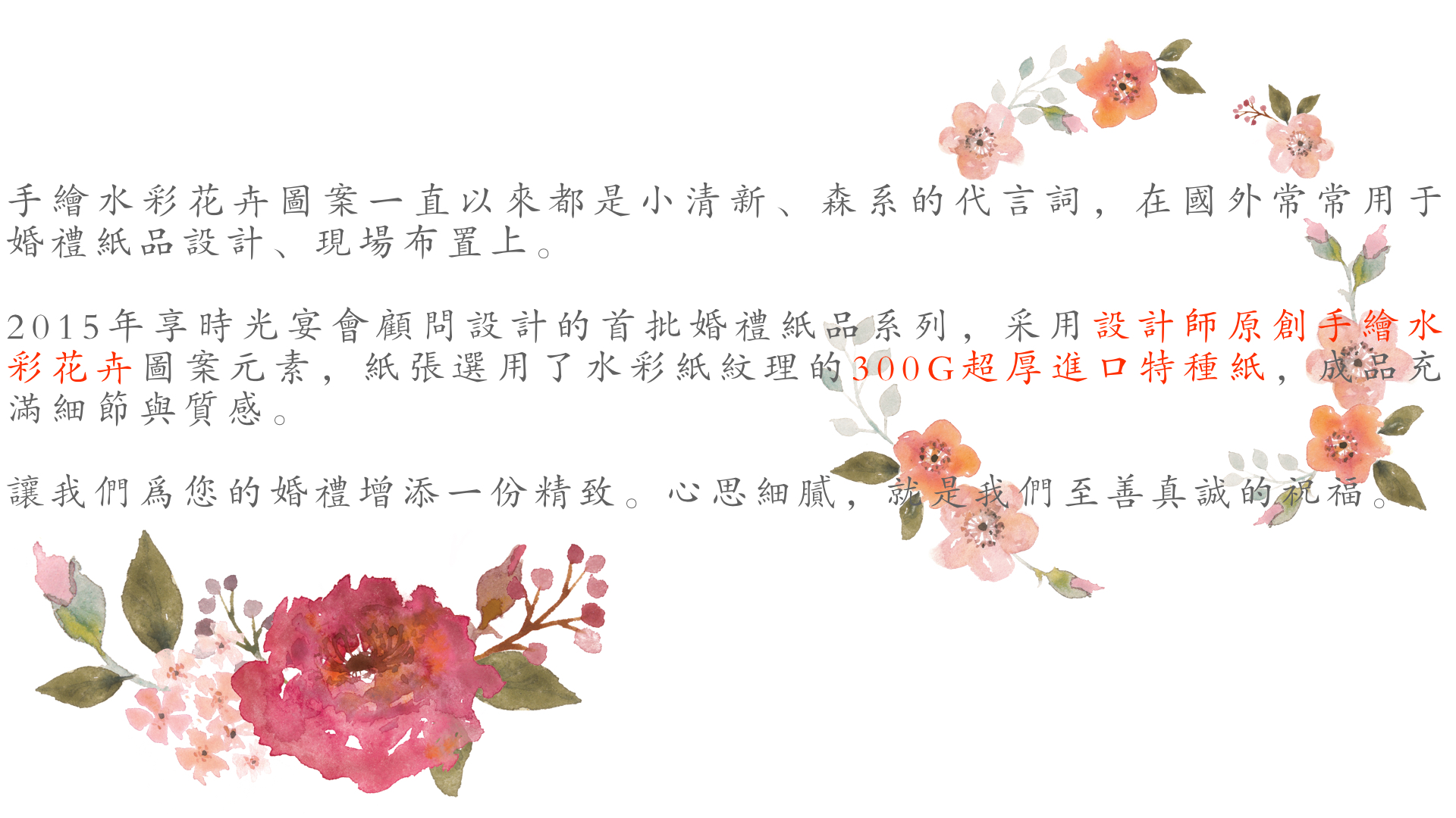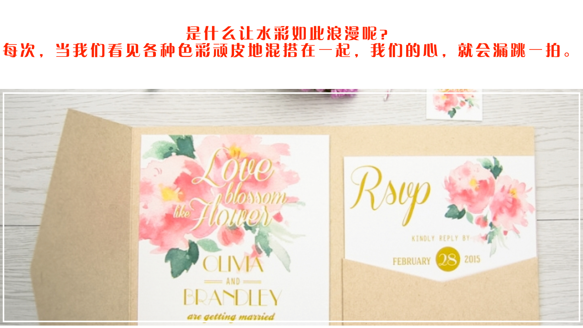 手绘水彩花卉图案一直以来都是小清新、森系的代言词 在国外常常用于婚礼纸品设计、现场布置上。