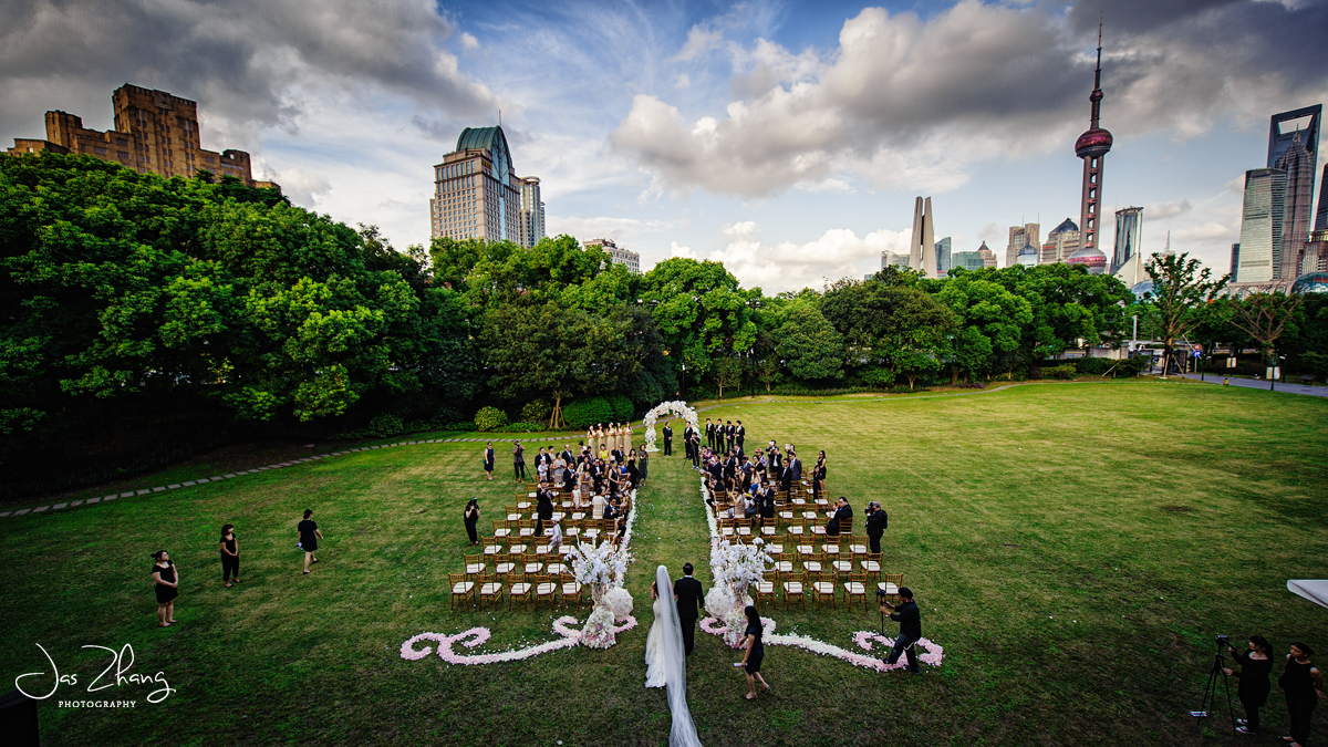 黄浦江边的夕阳,初秋的清风,和着宾客的欢声笑语,汇成了一首美妙曲子,在这座英国文艺复兴时期的建筑中回荡。一场近乎完美的复古西式婚礼,一切细致精彩,传统又不乏新颖,如梦似幻。难怪小伙伴们看完都说这就是他们梦想中的样子。