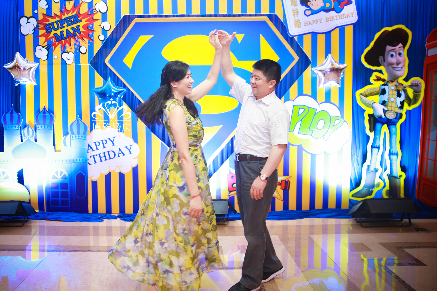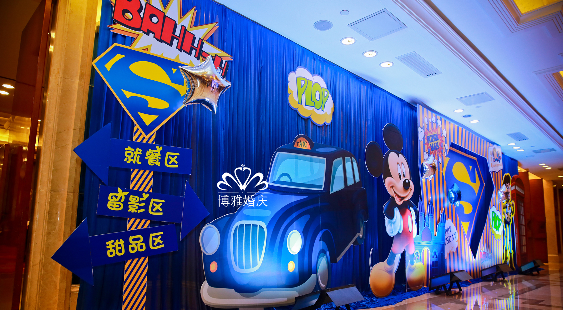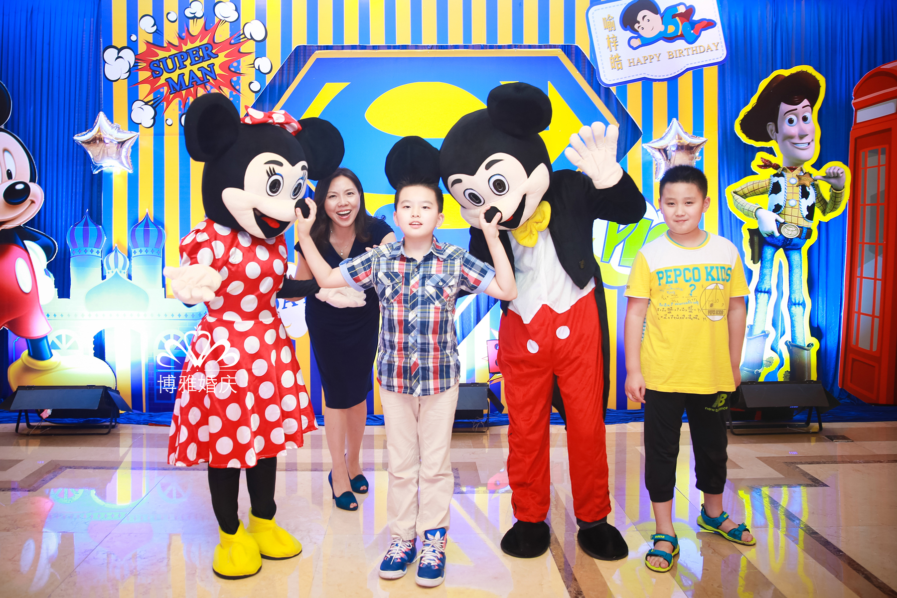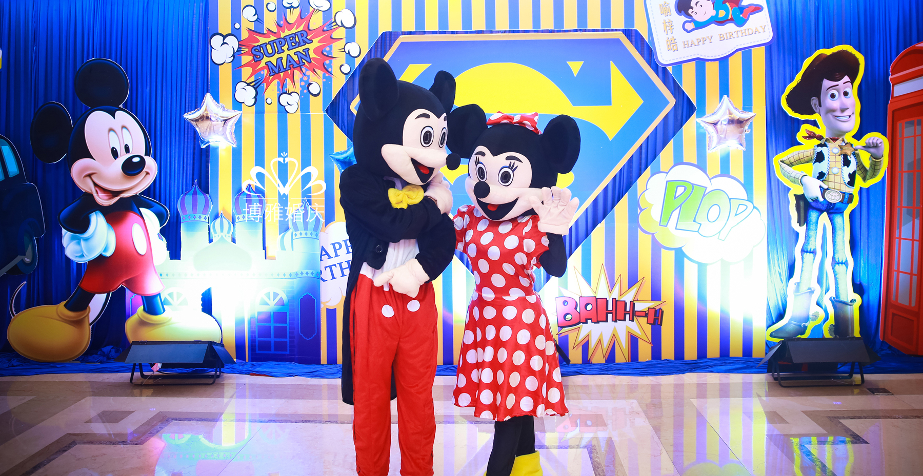 我想为你建筑一座城堡,让你永远做一个快乐的王子,你说你想变成一个超人,这样就可以保护爸妈,其实你就是一个小超人,散发着永不停息的能量,有你在,快乐就在;你说你喜欢米奇,我便向米奇米妮发出邀请来参加你的生日party,现场你和他们在一起快乐的拍照;你说你喜欢看《史记》,我将三国游戏放入现场;或许在别人的眼里这些并不相容,但是我知道,这就是你的城堡梦,只是我把它变成了现实,梓皓,生日快乐!