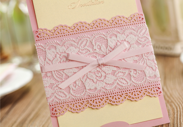 #细密绵柔的蕾丝与精致缎带相结合,打造出唯美欧式效果,双层特种纸裱纸,让请柬充满手感,立显独到品味。它可以温柔鲜亮粉色也可以高贵的卡其色。这是不是你一直渴求的那封喜帖?更多创意请柬请登录http://shop64119364.taobao.com/