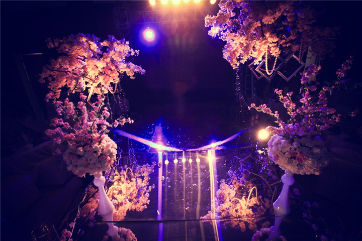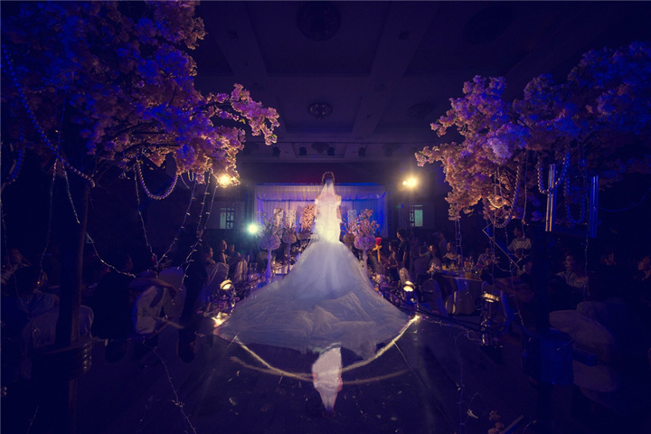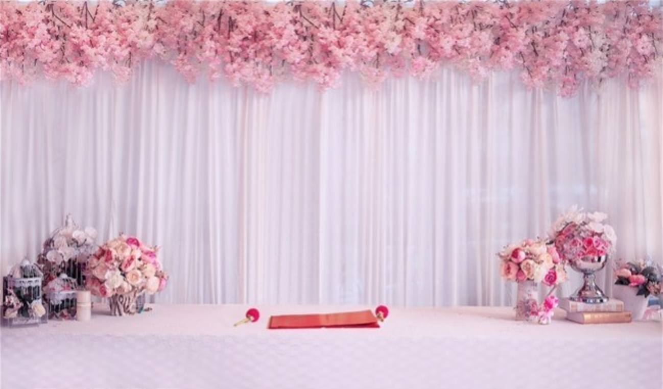 漫舞的樱花,洁白剔透的白瓷,粉佳人与樱花树下的邂逅,一场爱情便在这里开始,盛放。整个场景温馨,干净,唯美,大气,是每个女人堆婚礼梦想的浪漫记忆。
