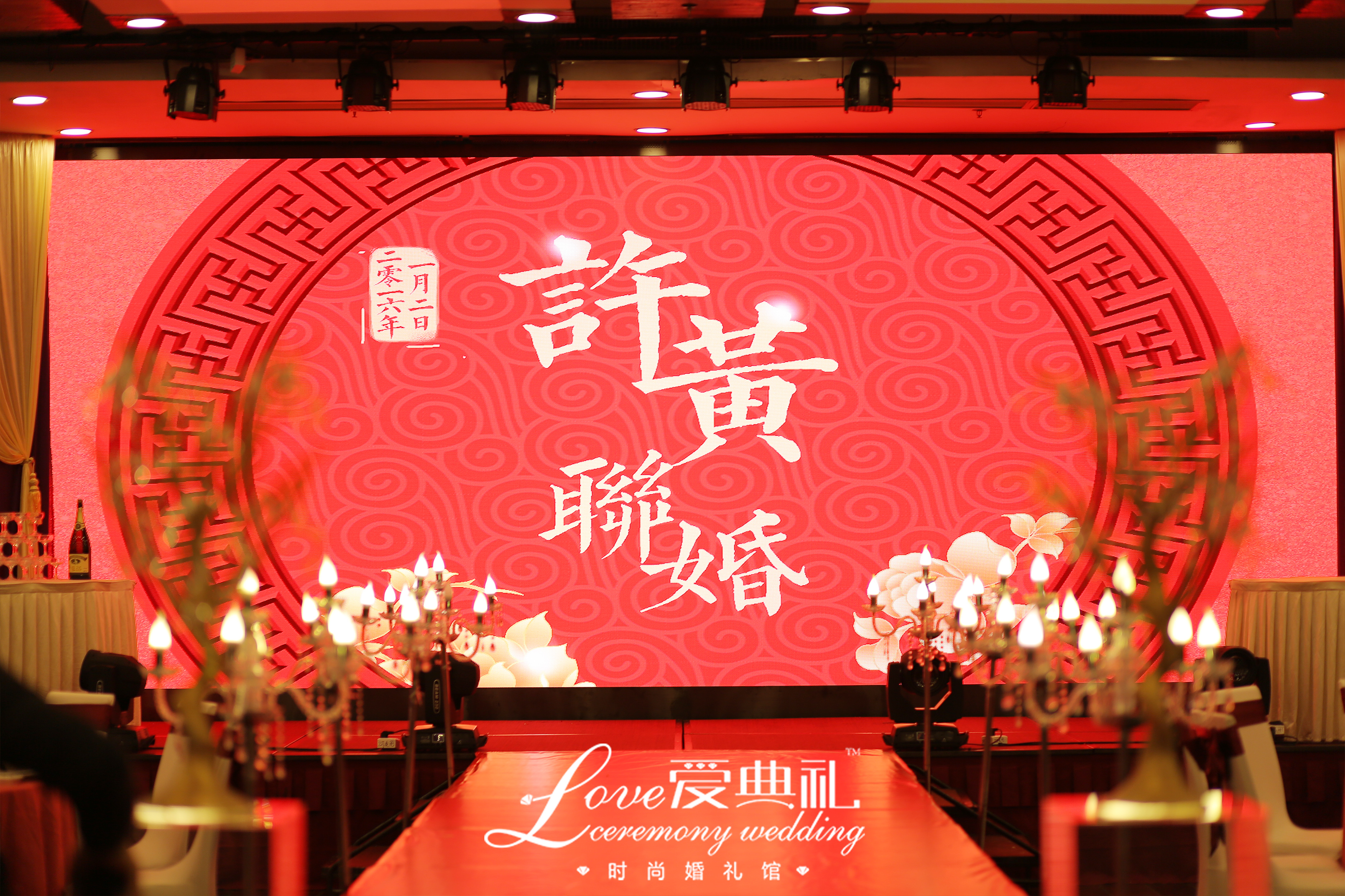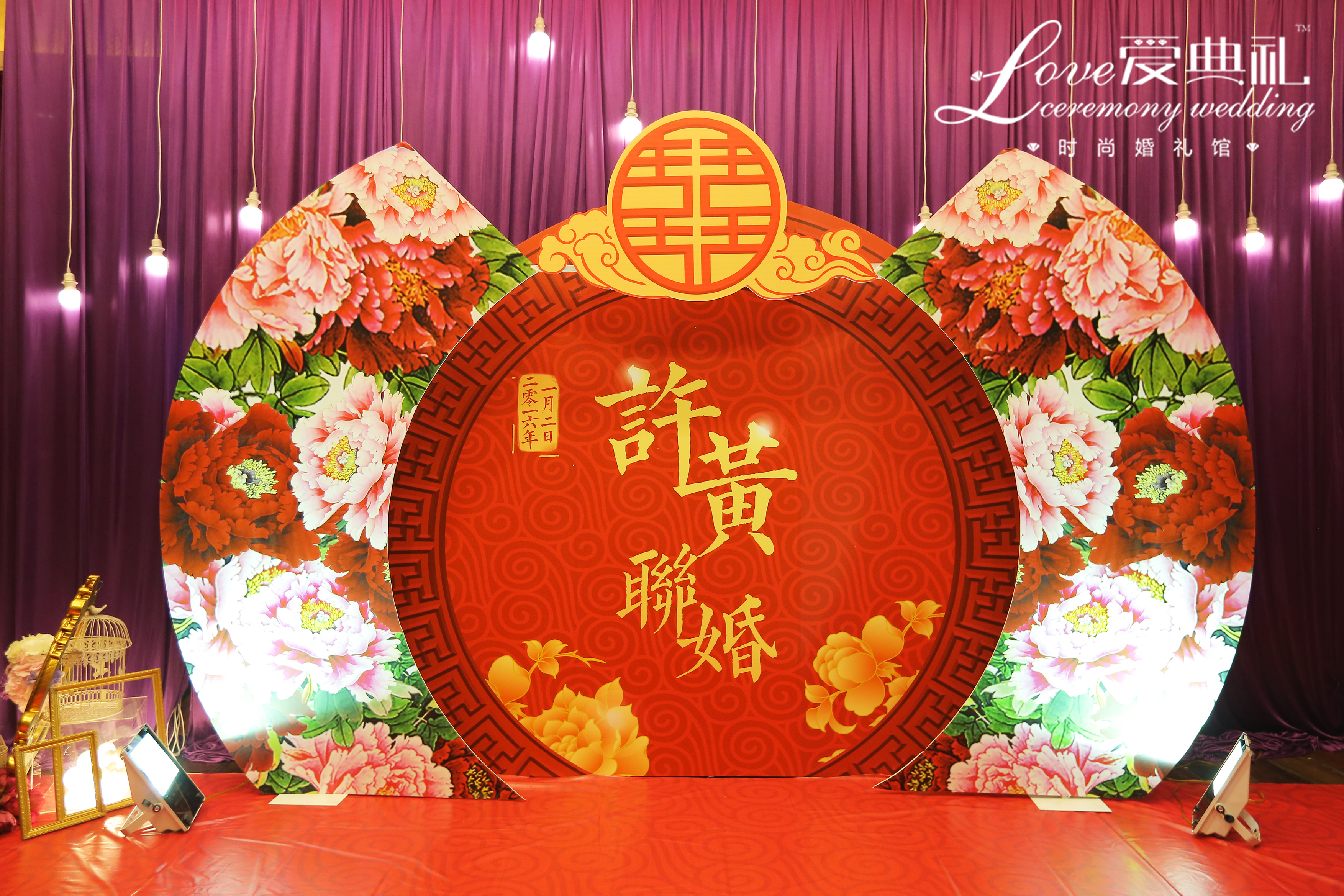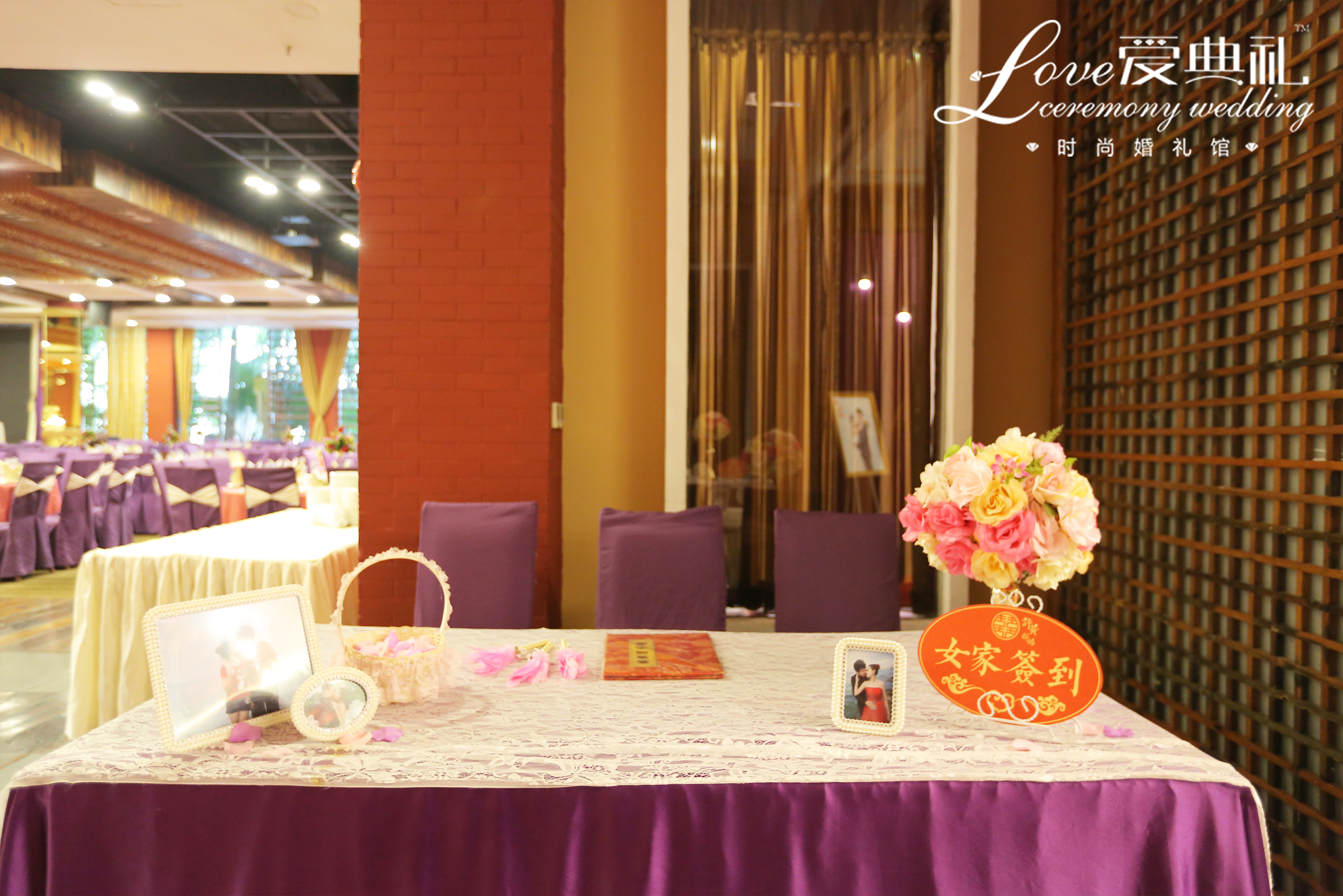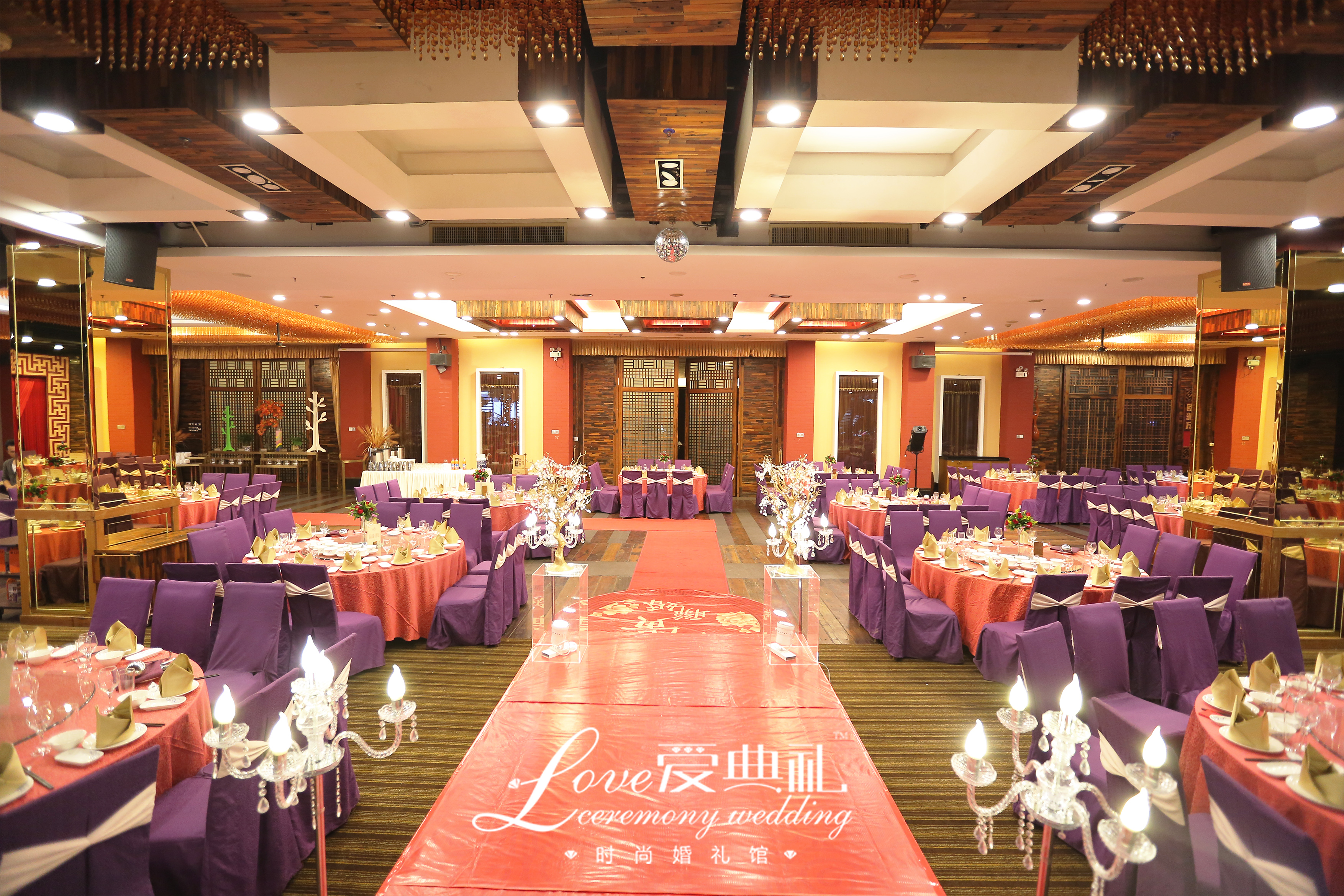 中国红结合高贵紫,大气磅礴,体现新人的相互包容大爱
