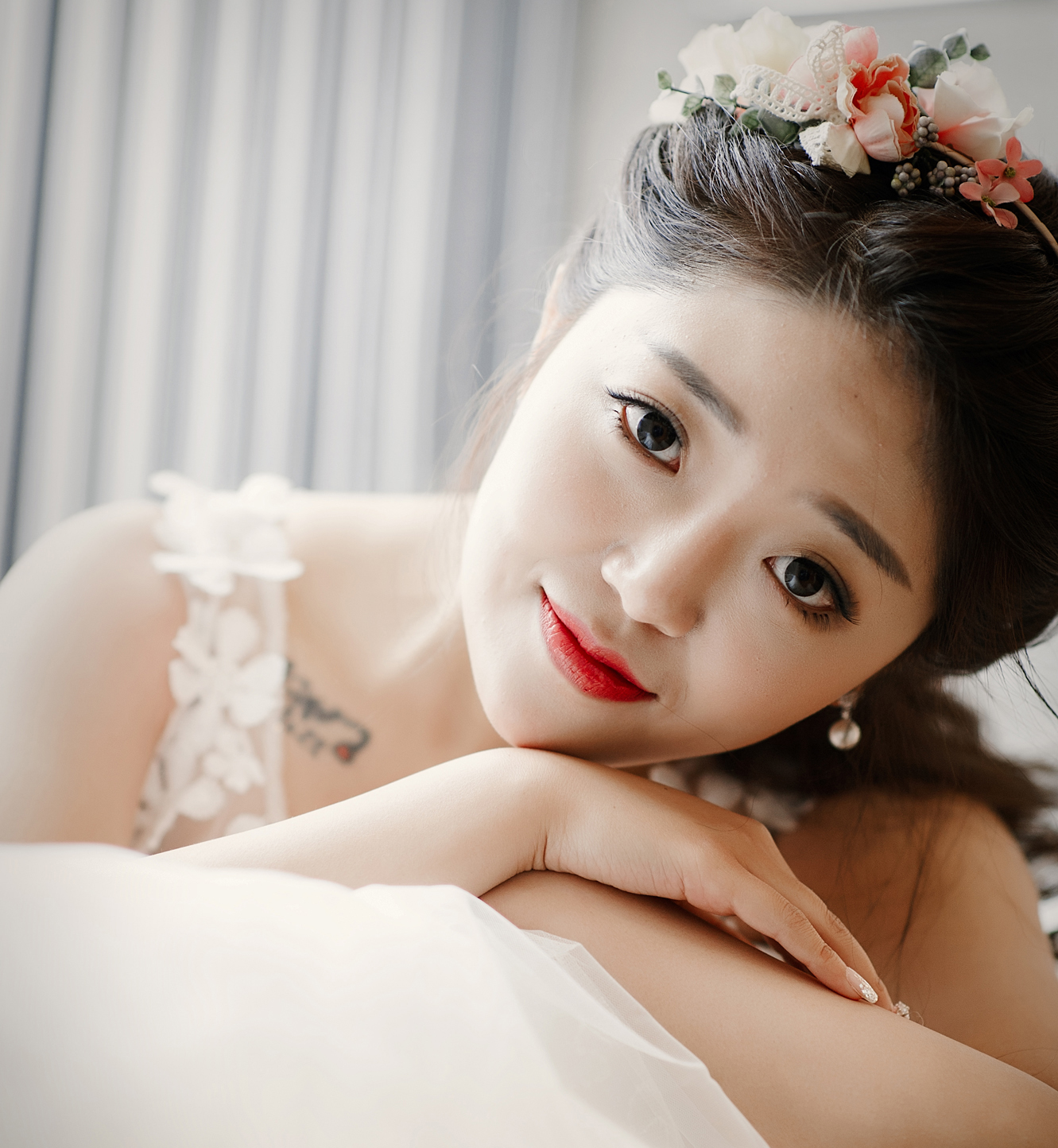 干干净净 水晶一样的妆容 搭配清新花饰 最适合接亲了