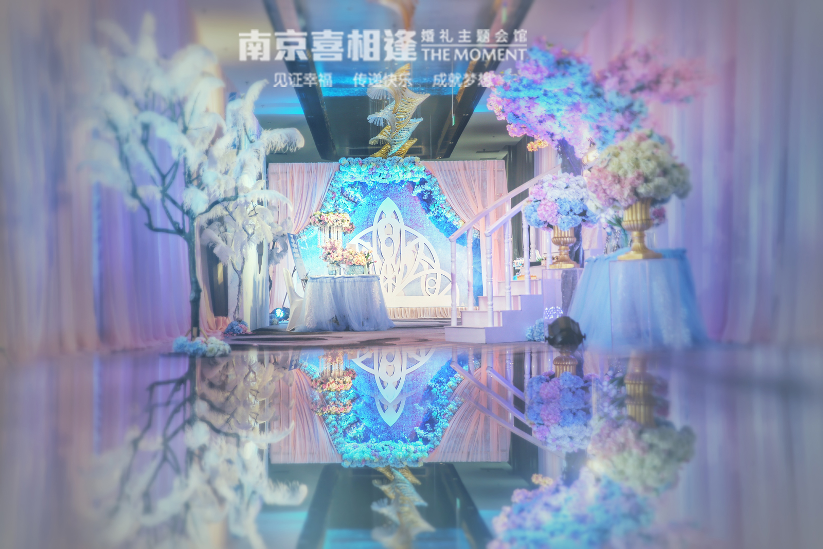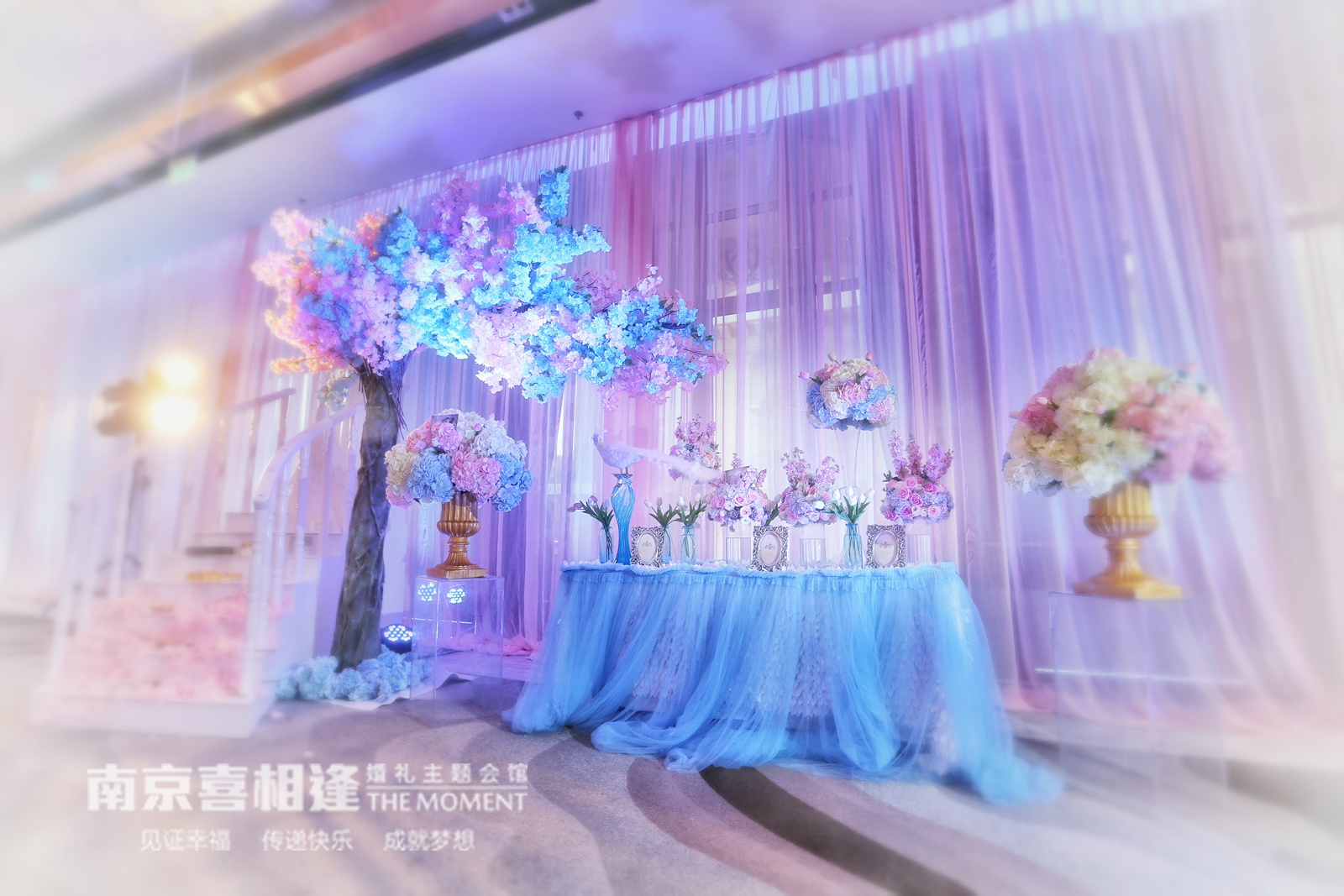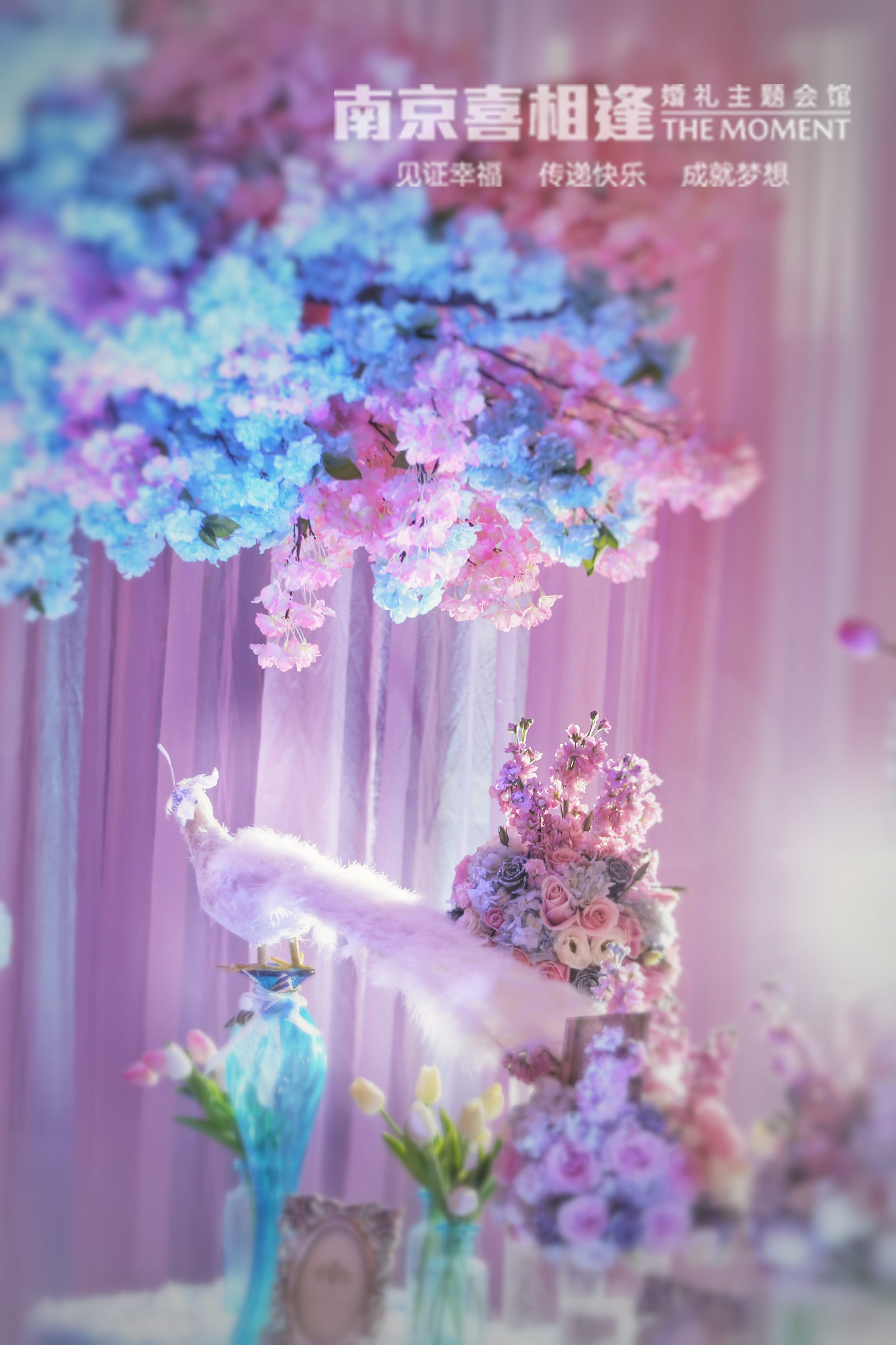 粉紫色总给人浪漫甜蜜的感觉,加上那么点纯净的淡蓝,更显得美好梦幻。粉紫与粉蓝的完美结合,作为本场婚礼的主要色系,圆了每个女孩童真年代的公主梦,圆满了童真也意味着开启轻熟。阳光正好,刚刚好遇到对的人,携手走向今生两个人的世界。