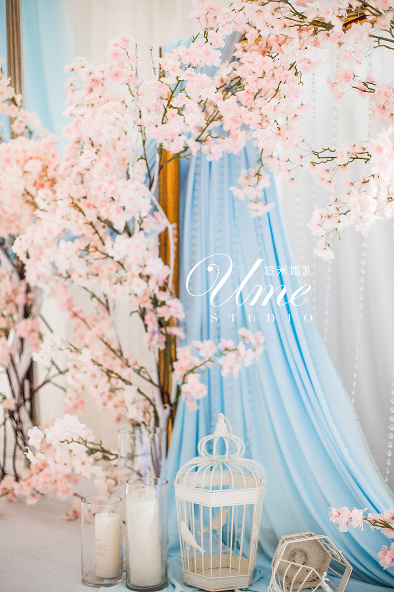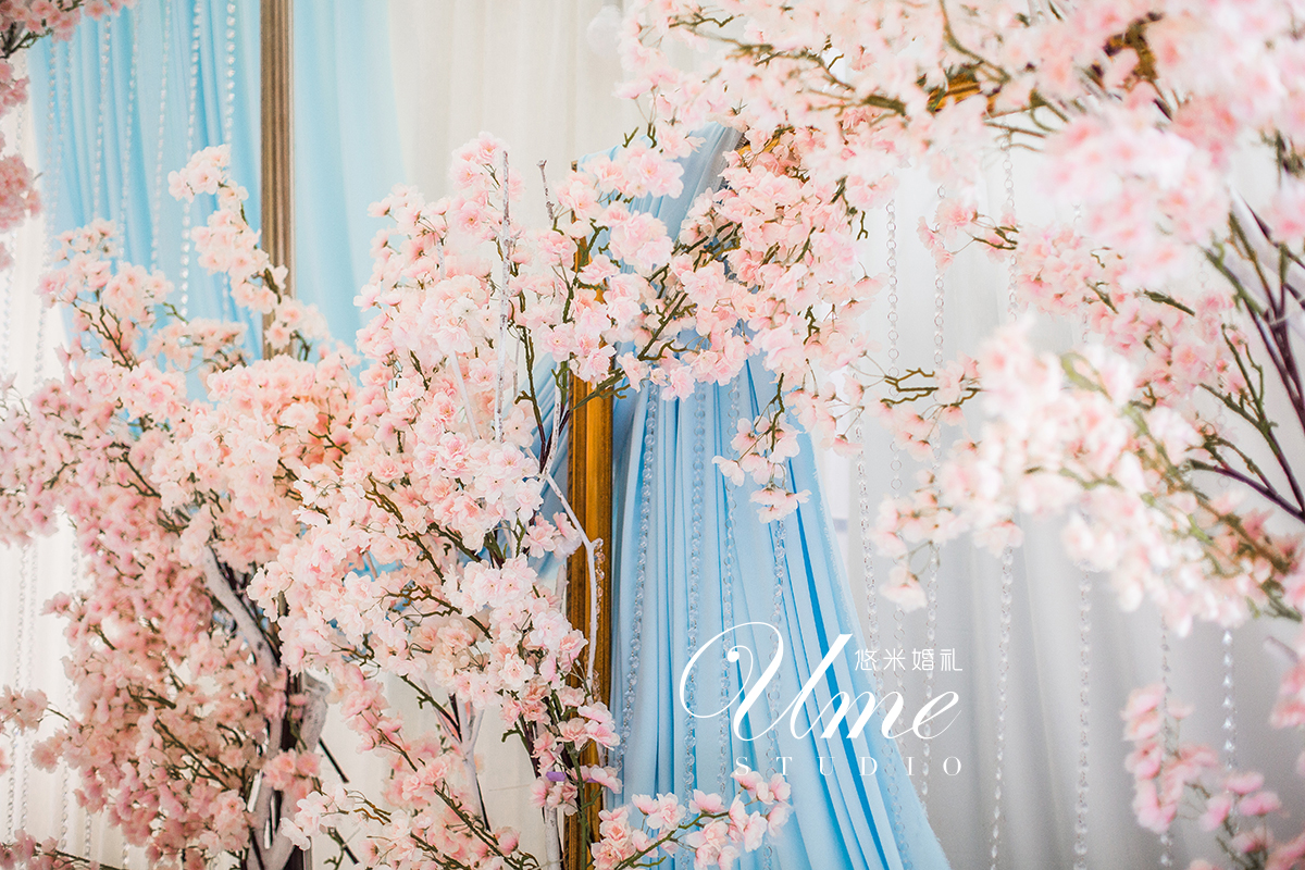 水晶粉+静谧蓝樱花主题婚礼《Rose quartz & Serenity》