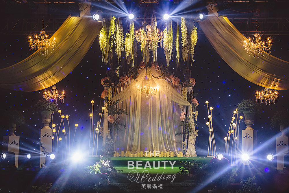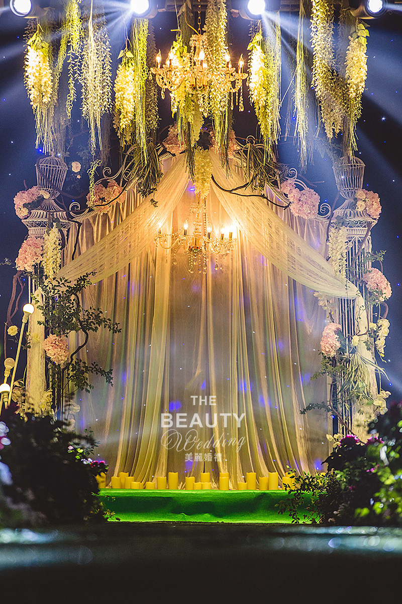 喜欢童话森林的新娘希望自己的婚礼也能像穿梭在森林一样。星光点点,荧光微微,花开朵朵。