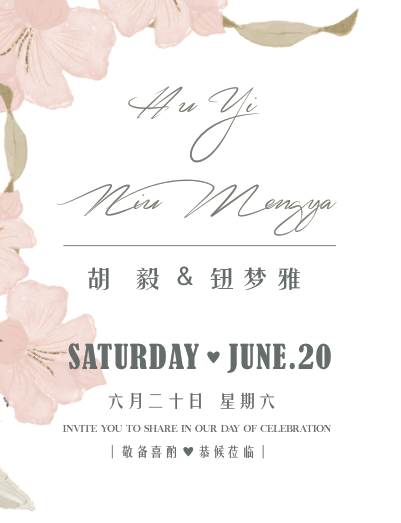 内容:请柬设计、婚礼背景喷绘、欢迎牌、婚礼logo、餐盘卡设计