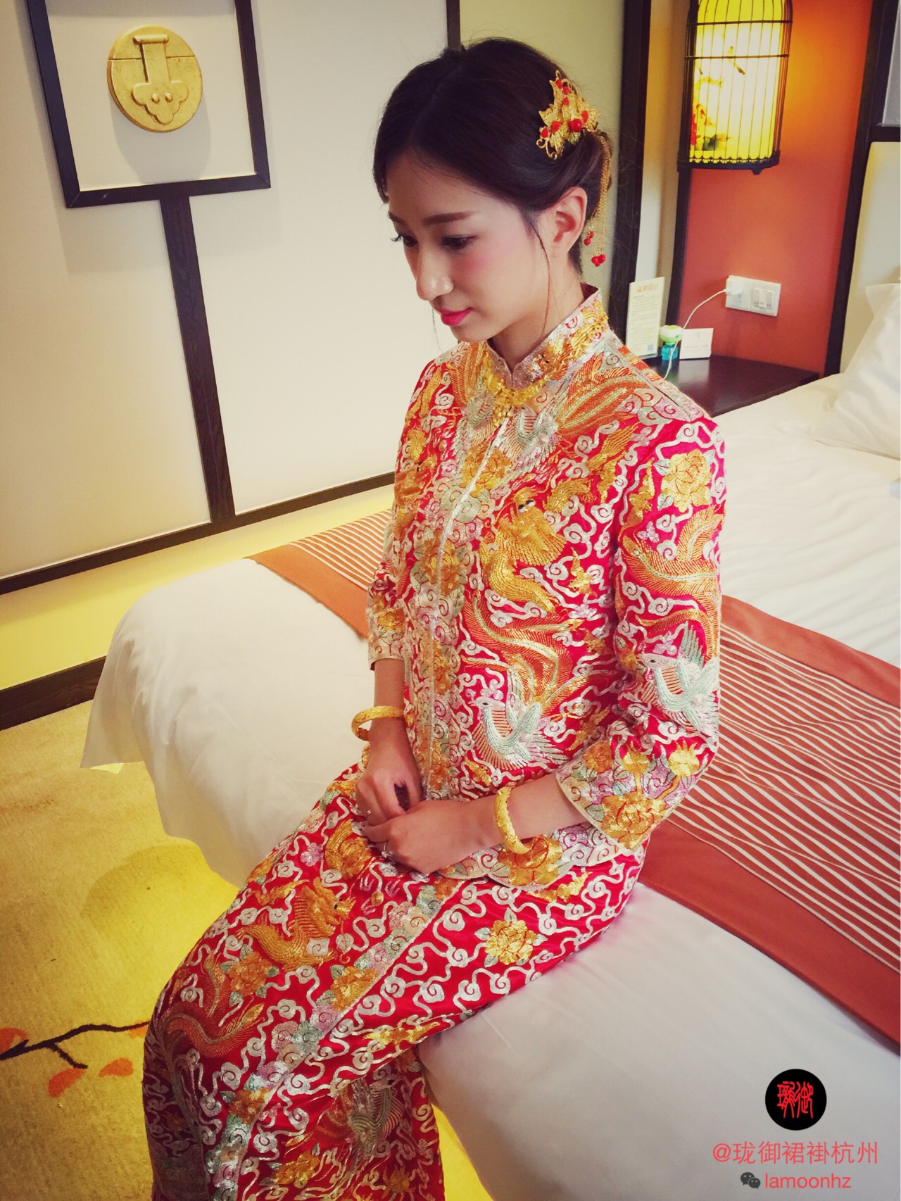 LaMoon婚纱杭州店已引进#香港珑御裙褂#品牌。这款是金龙金凤牡丹水边”密五福“,它的密度介于中五福和大五福之间,纯手工立体刺绣的金龙金凤栩栩如生,精致细腻,喜庆高贵!与点翠的头饰搭配更显品质!