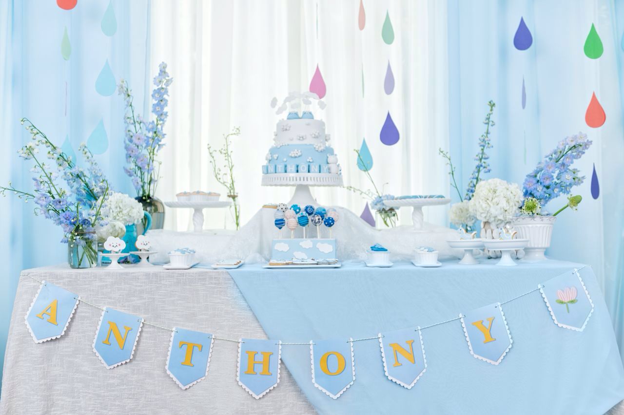 清新可爱宝宝宴甜品台