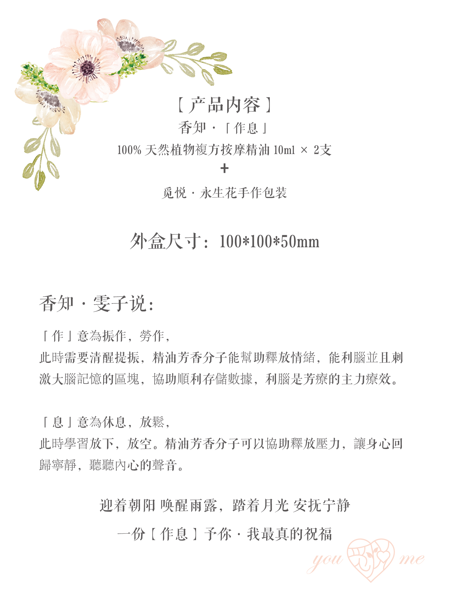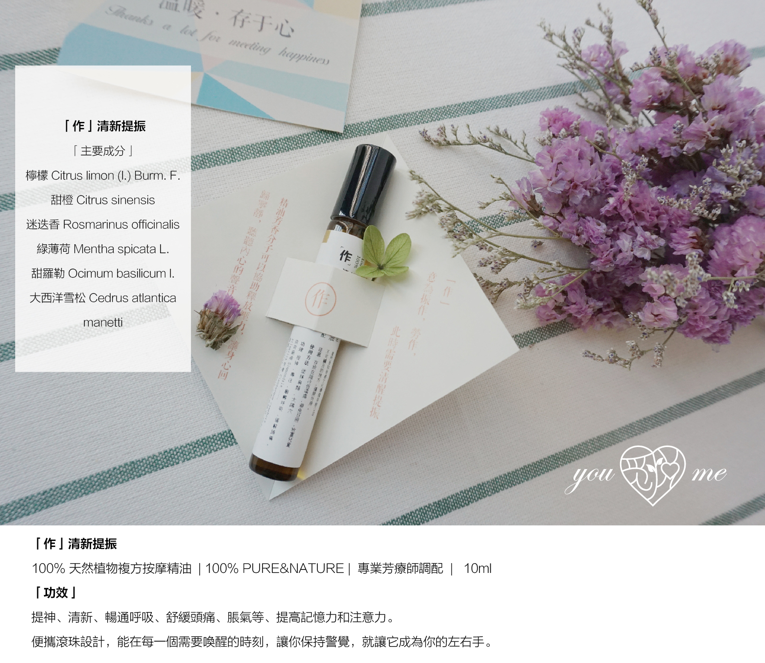 「作」意為振作,勞作,此時需要清醒提振,精油芳香分子能幫助釋放情緒,能利腦並且刺激大腦記憶的區塊,協助順利存儲數據,利腦是芳療的主力療效。