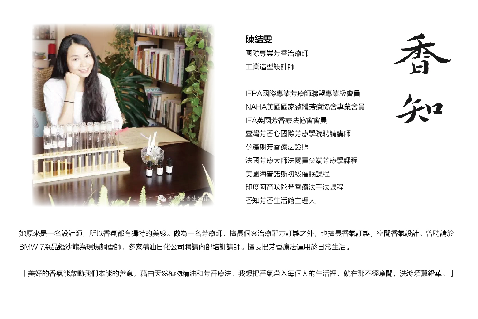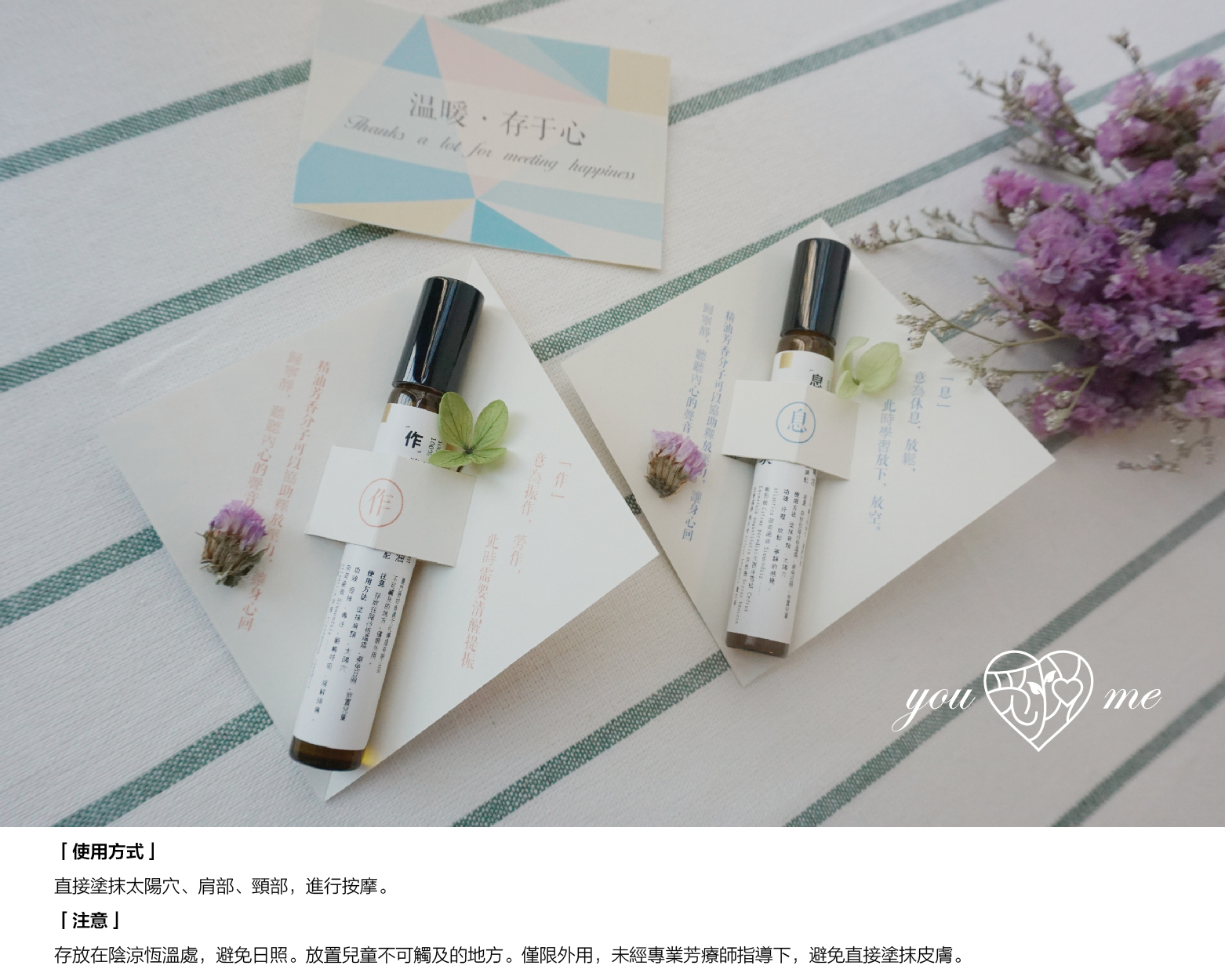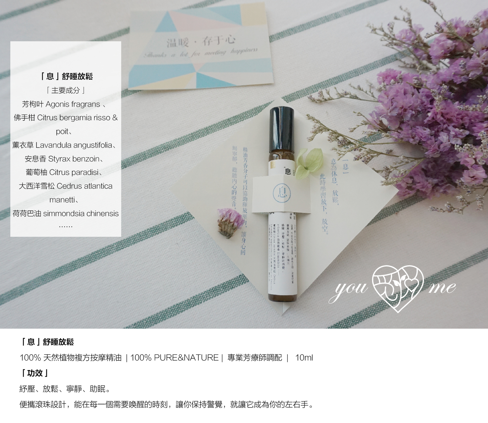 「息」意為休息,放鬆,此時學習放下,放空。精油芳香分子可以協助釋放壓力,讓身心回歸寧靜,聽聽內心的聲音。