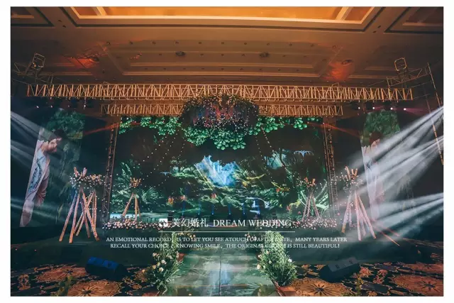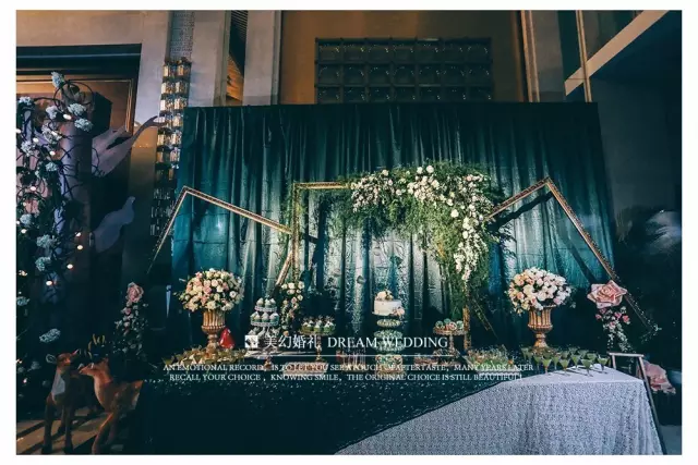 本次婚礼的设计灵感全部来源于新人的爱情故事。以书本为轴心,结合了新人的书香门第的背景身份,与男女主角相识于求学之路的青葱岁月的爱情经历。打造了一场梦幻的森绿主题的婚礼。