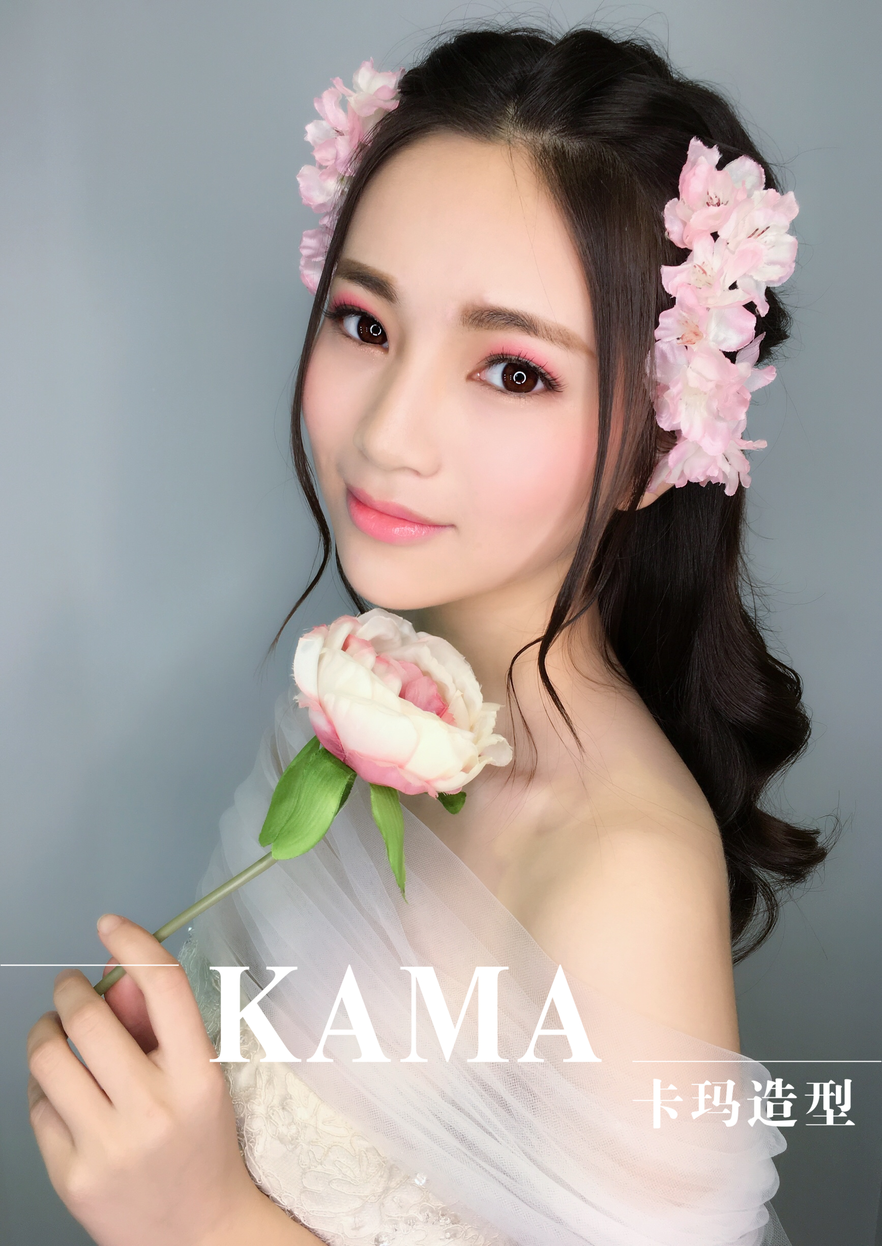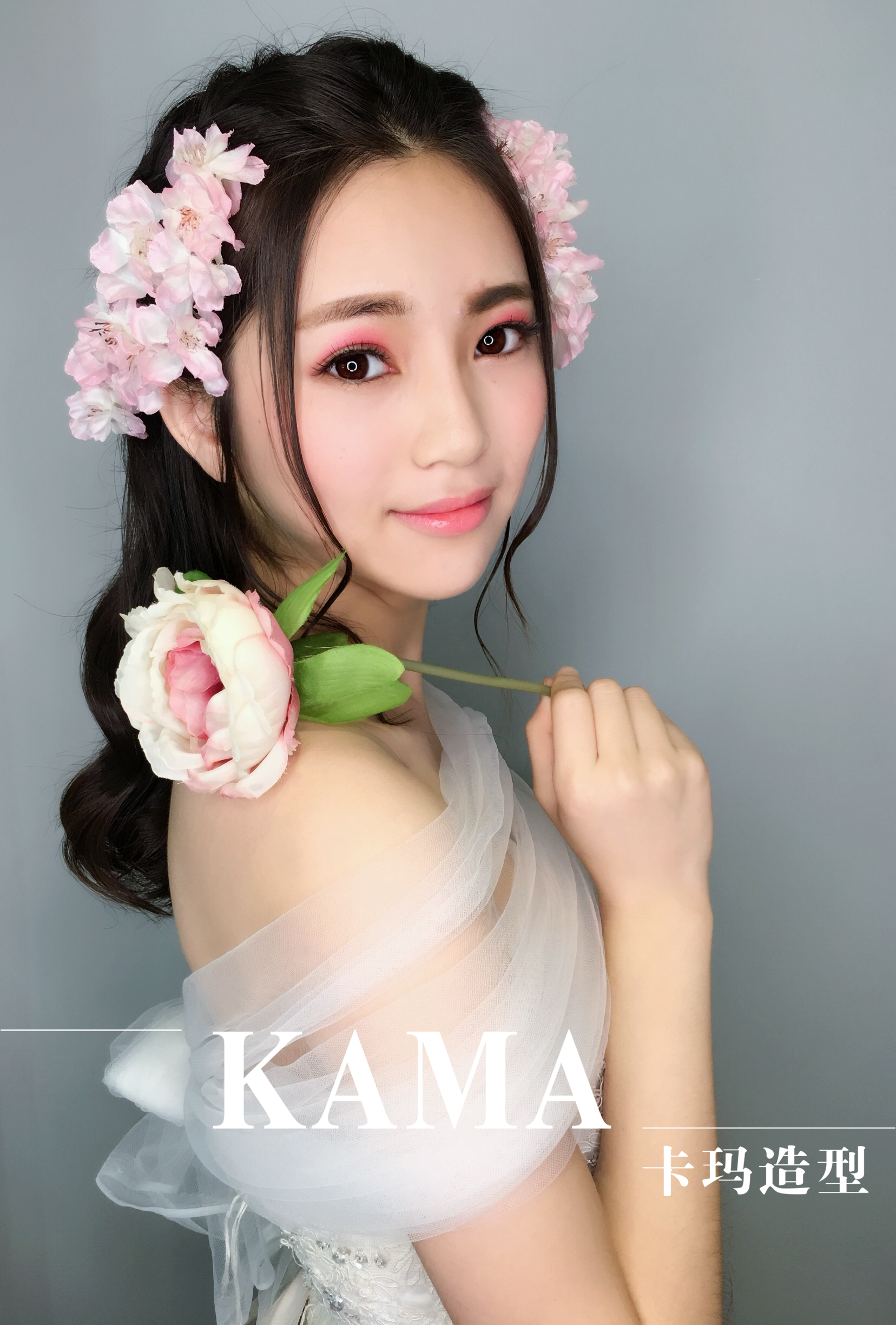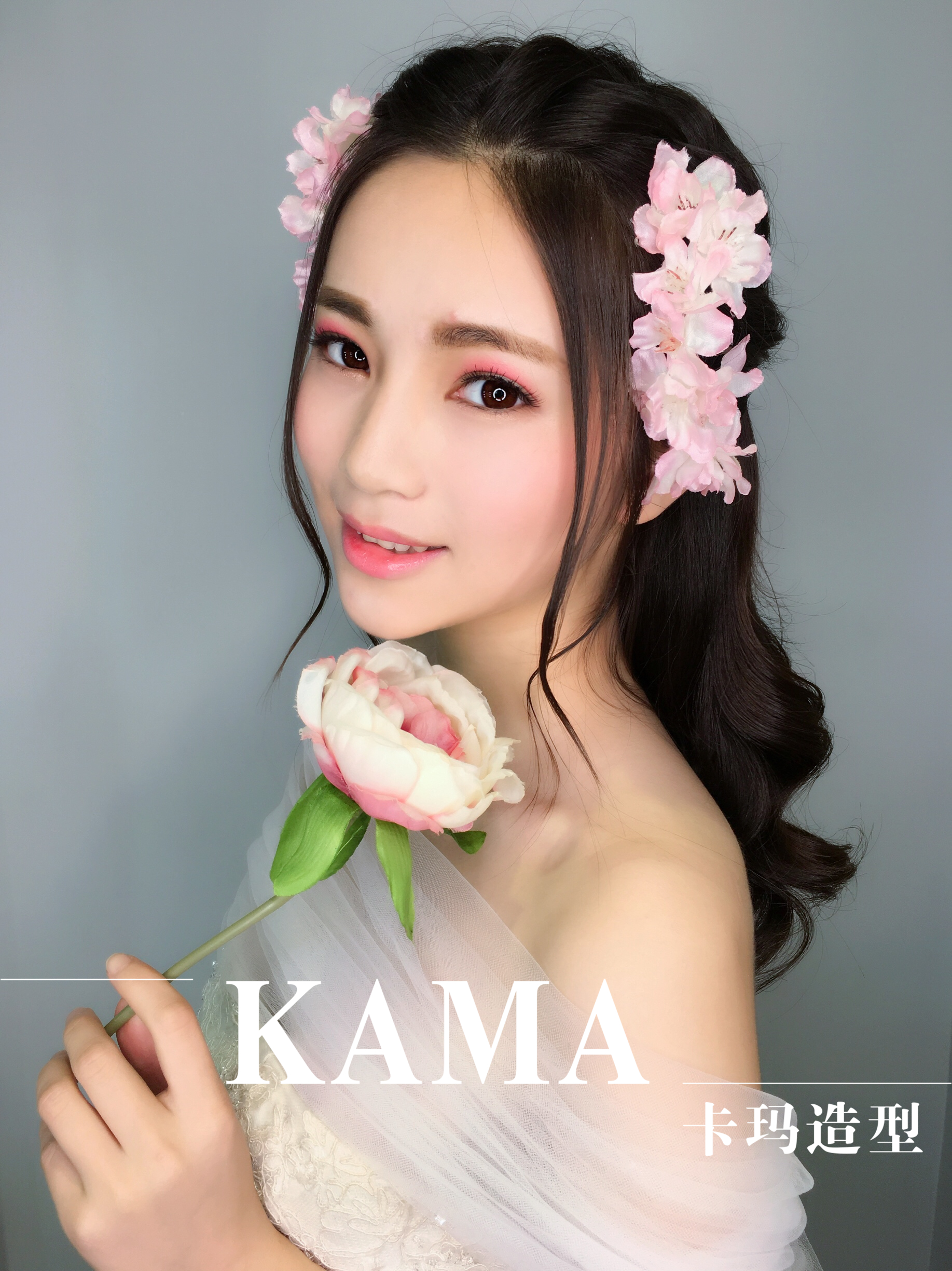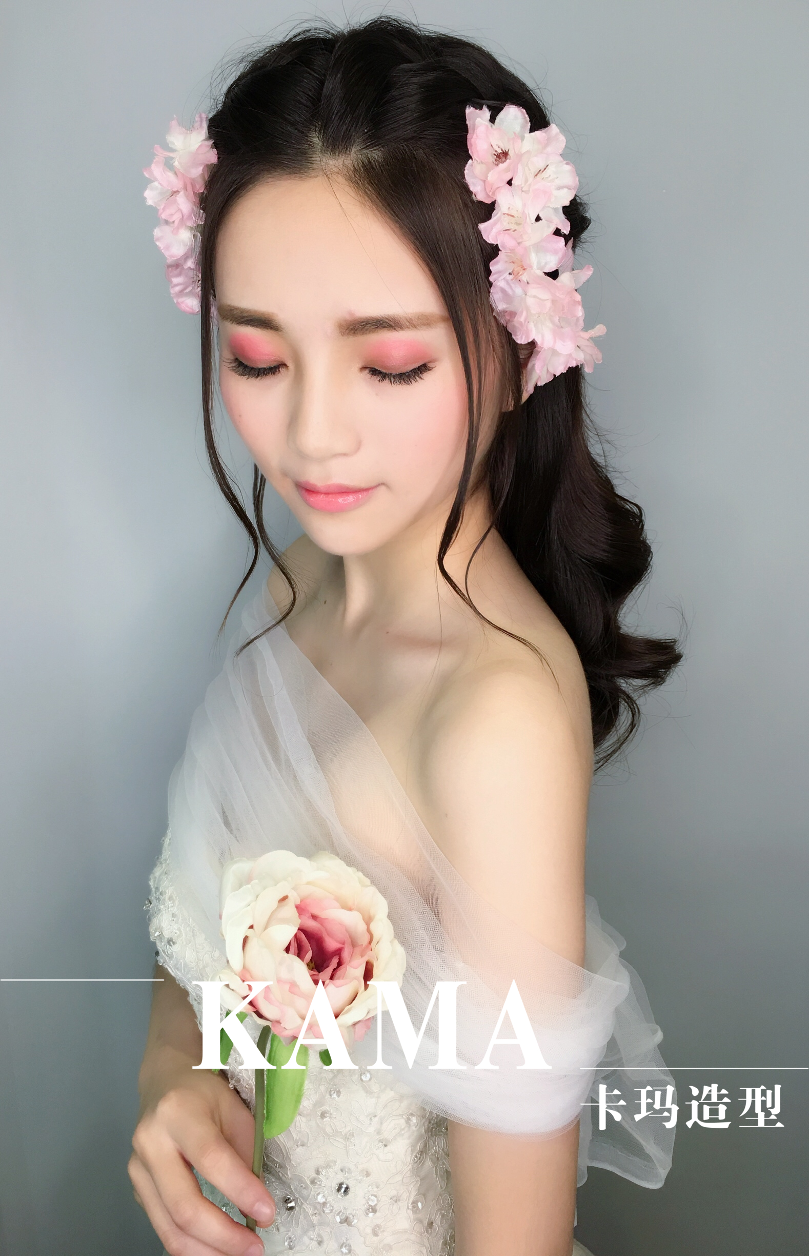新娘鲜花造型 | 粉萌甜蜜的樱花波浪造型