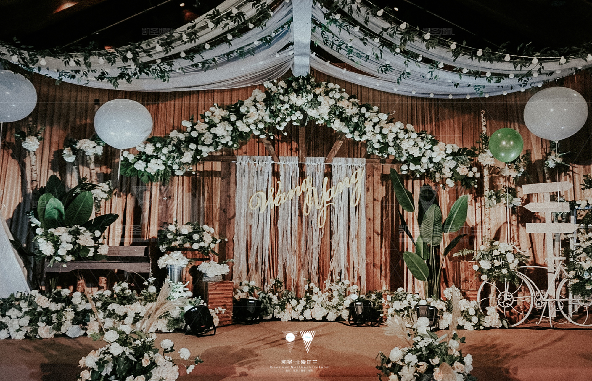 于盛夏,小清新婚礼,也是我们自己原创颜色:大地色。清新大气的婚礼