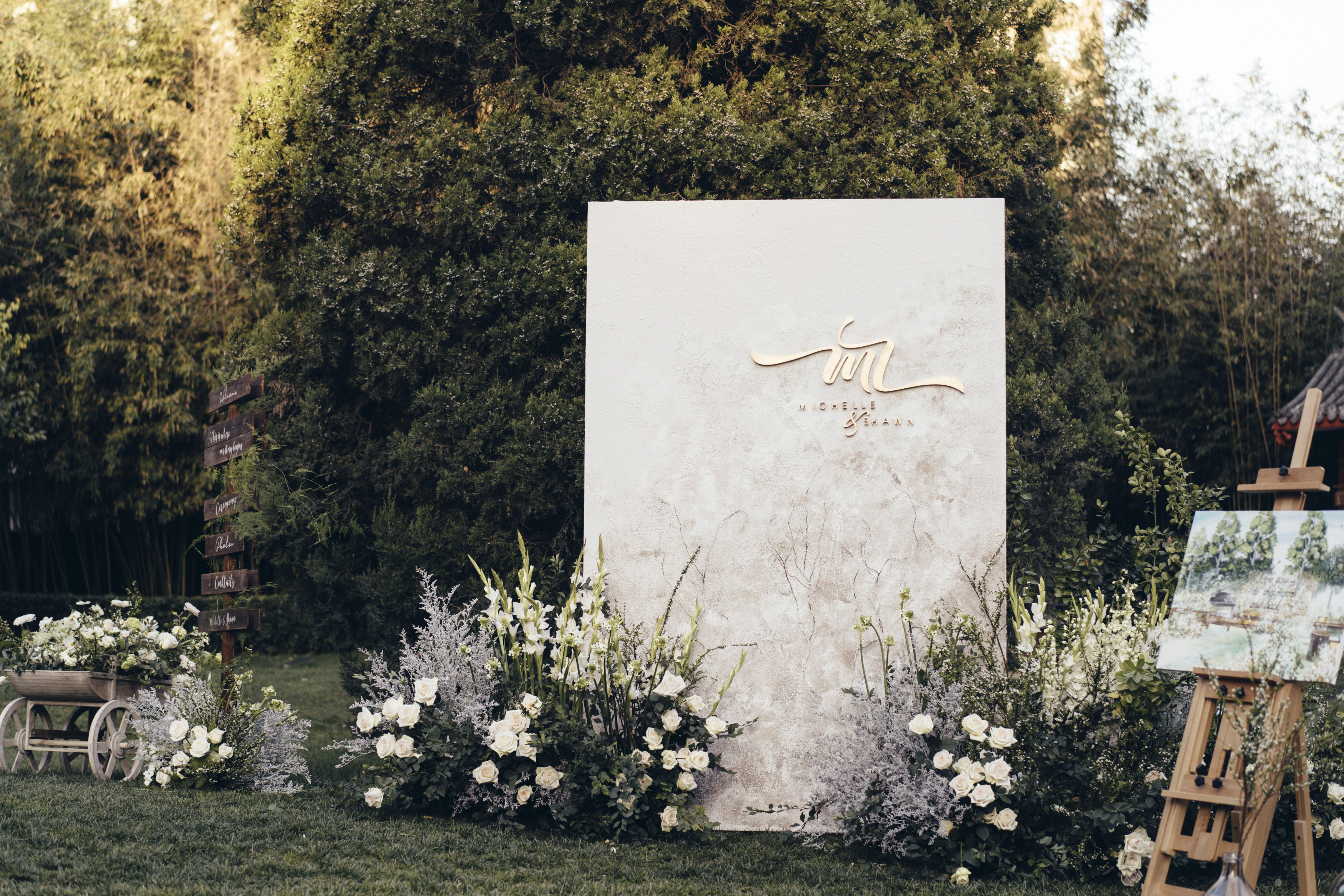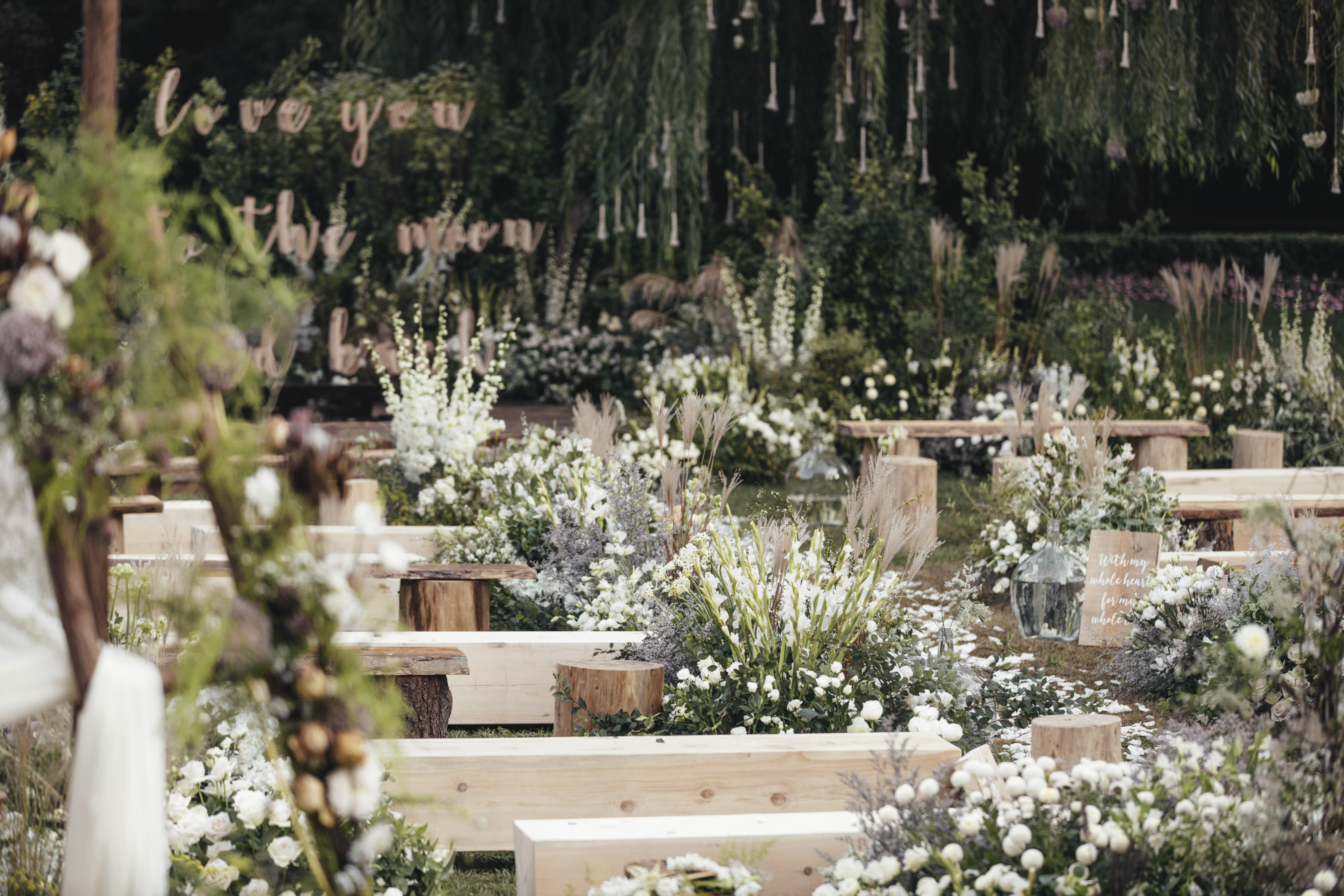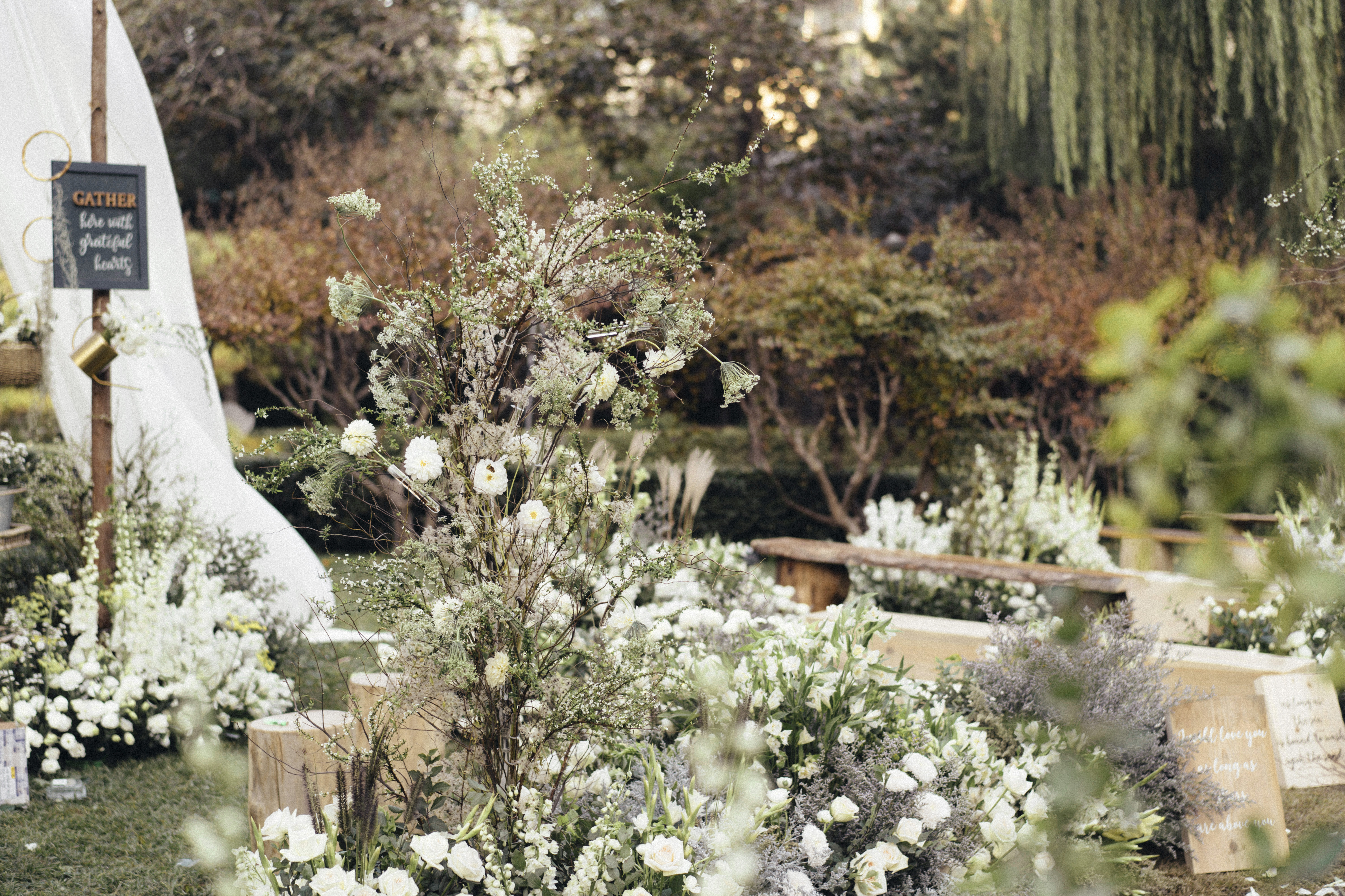 户外婚礼 | 印象派的花与木