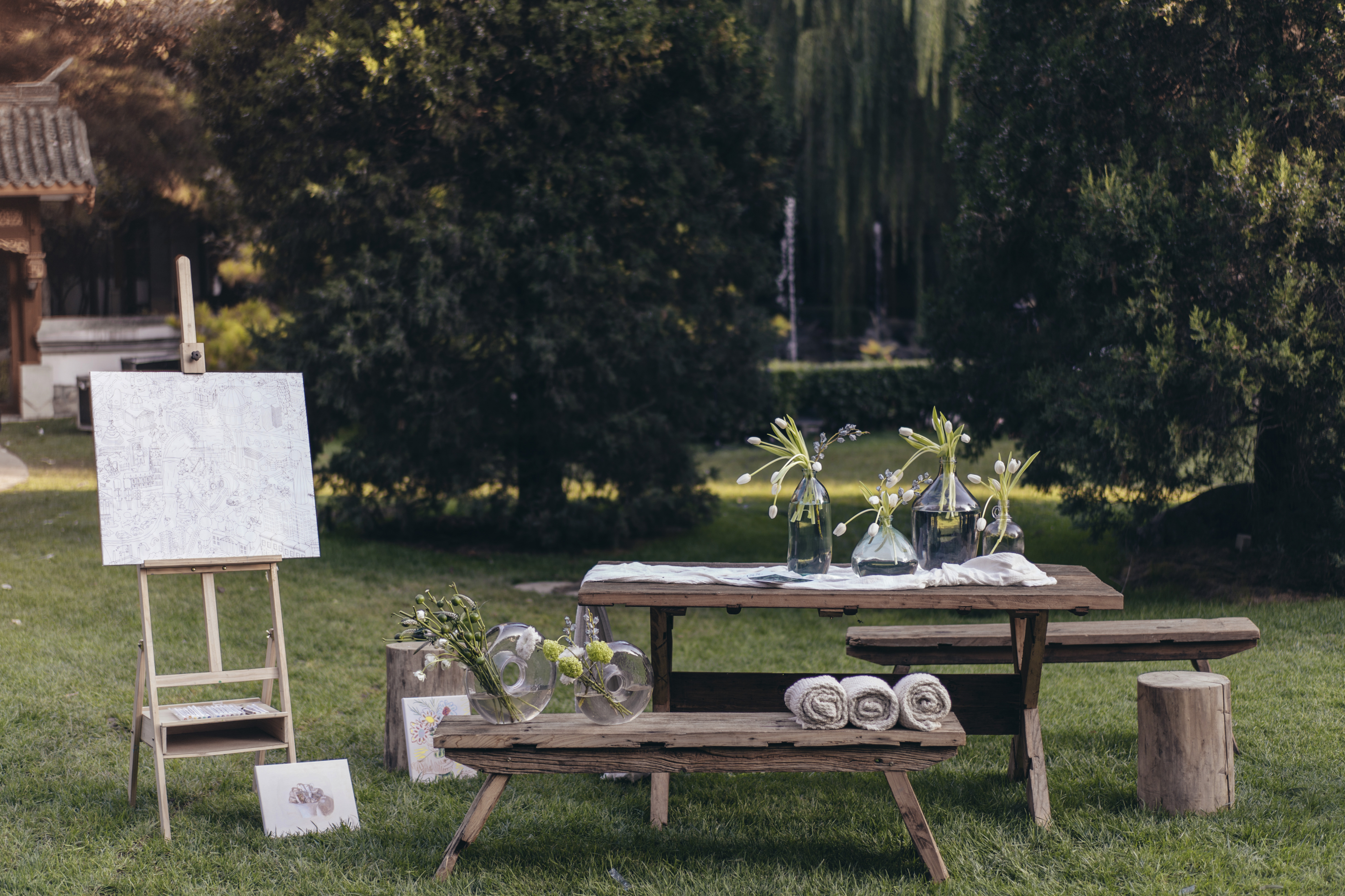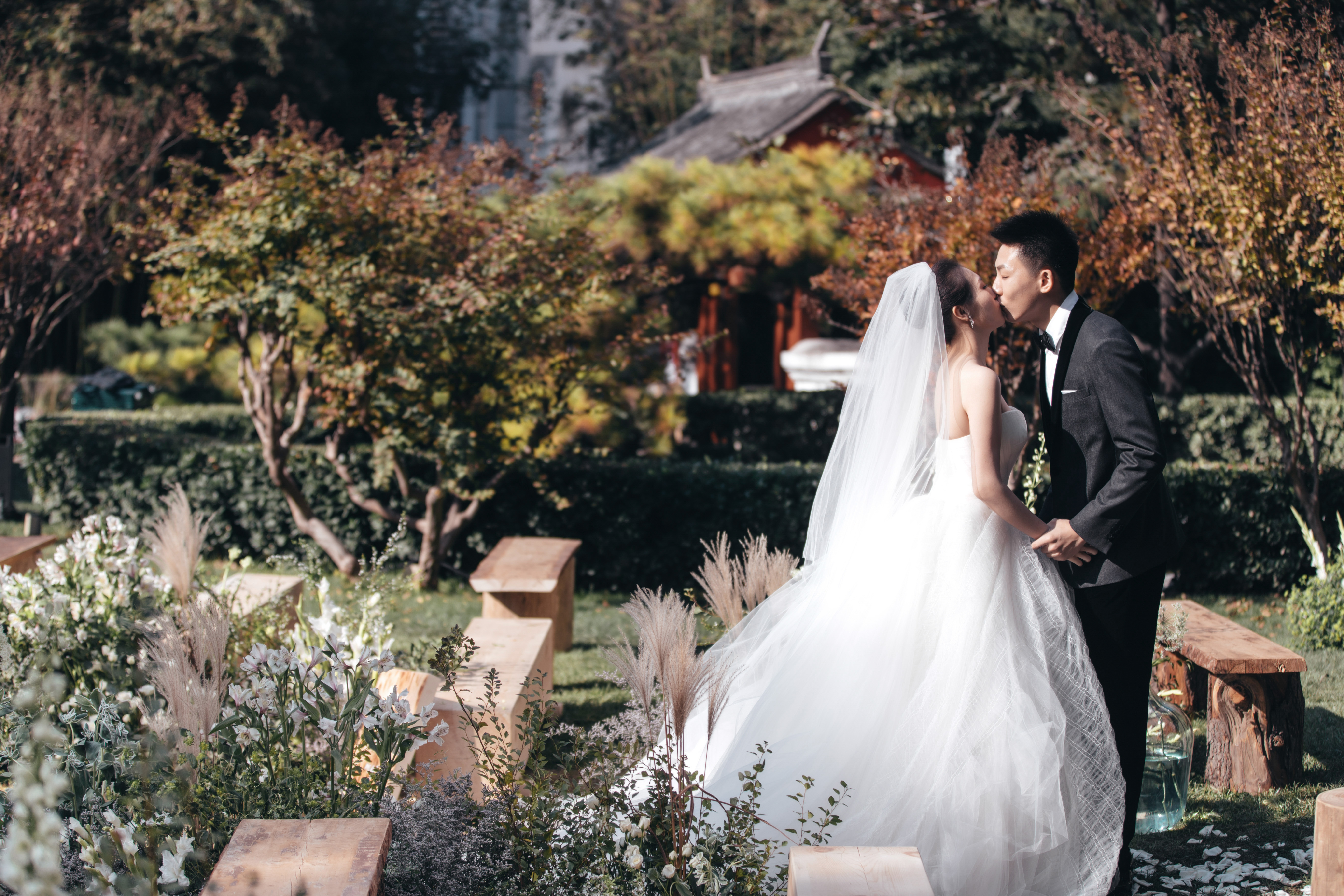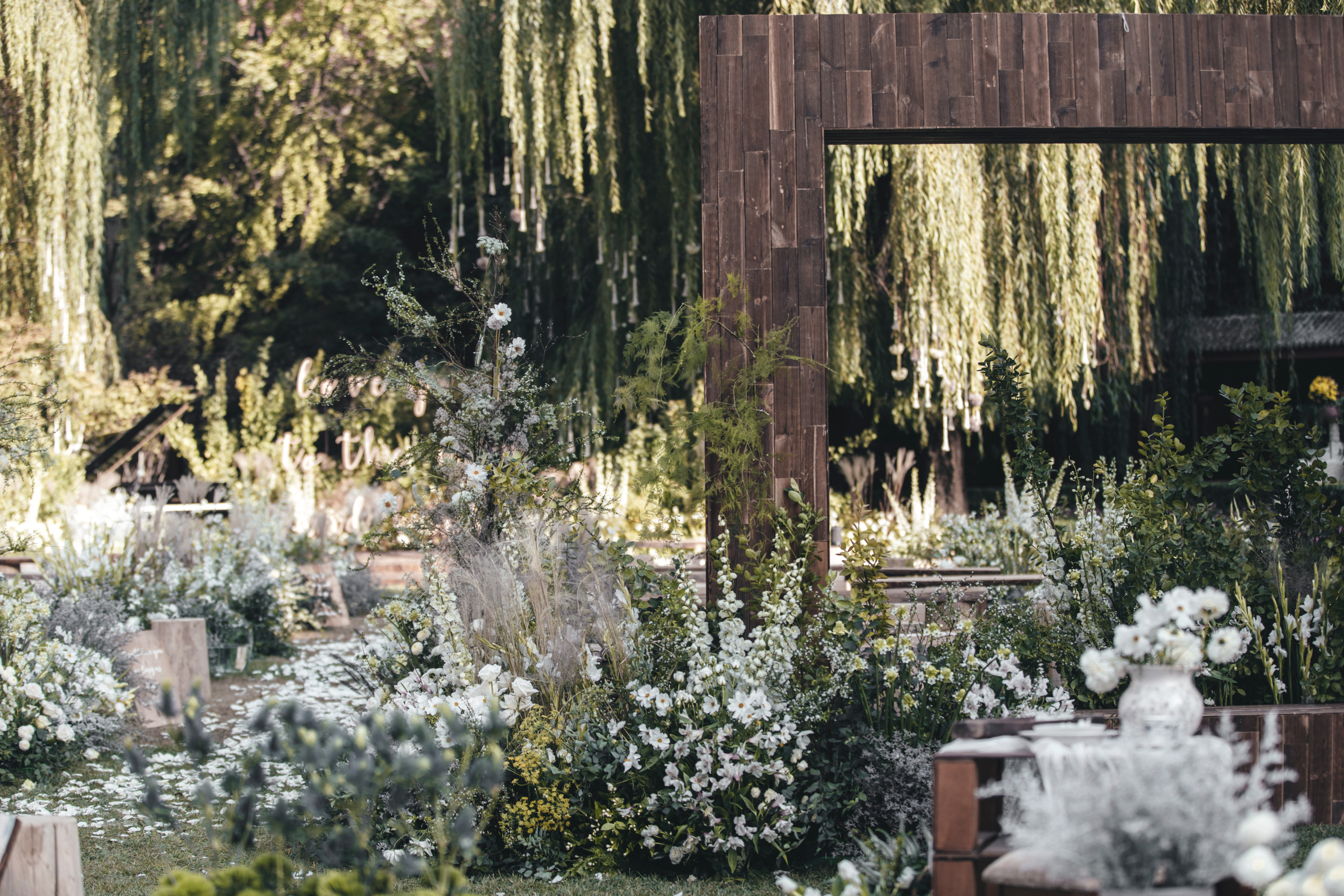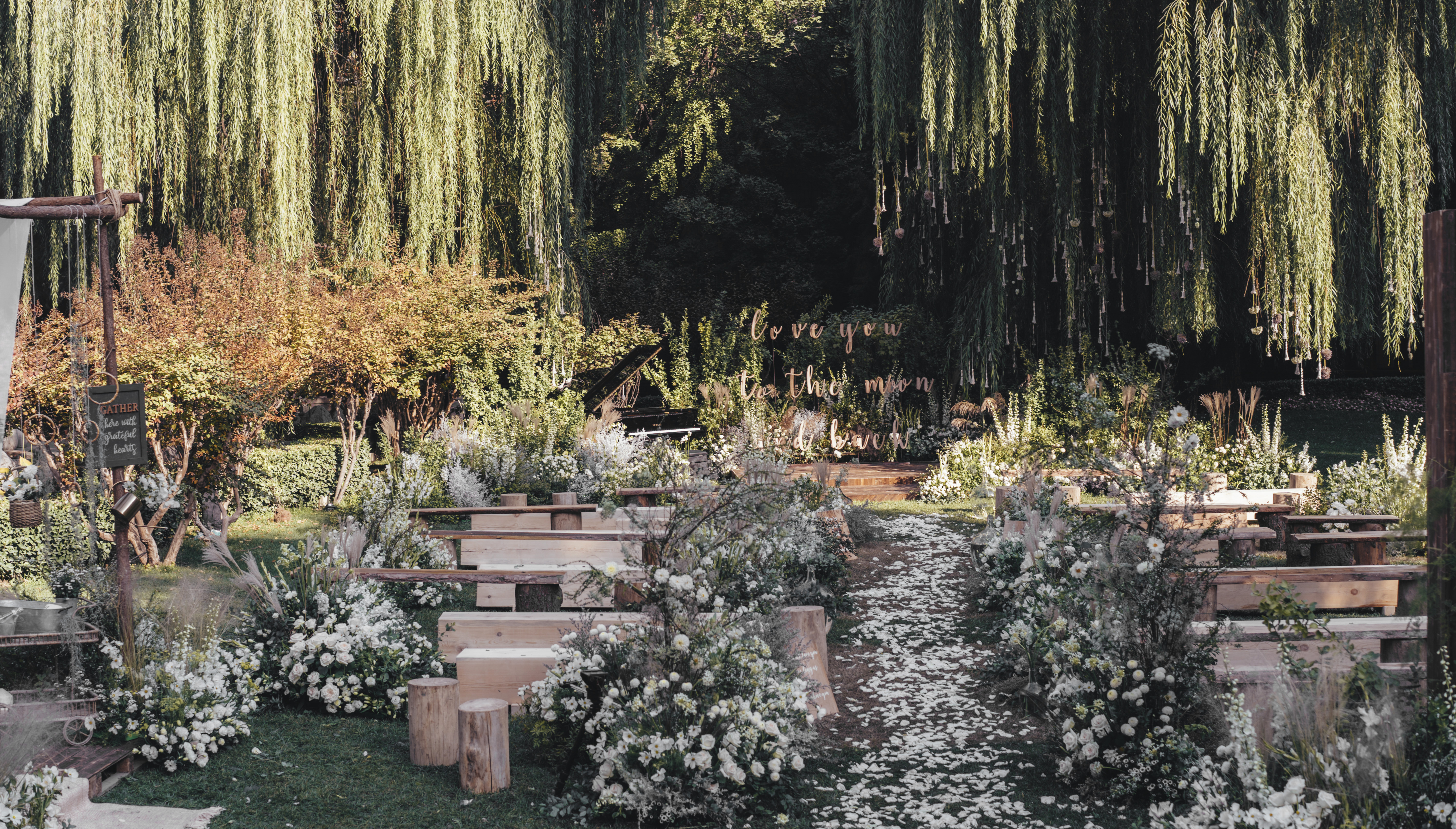 户外婚礼 | 印象派的花与木